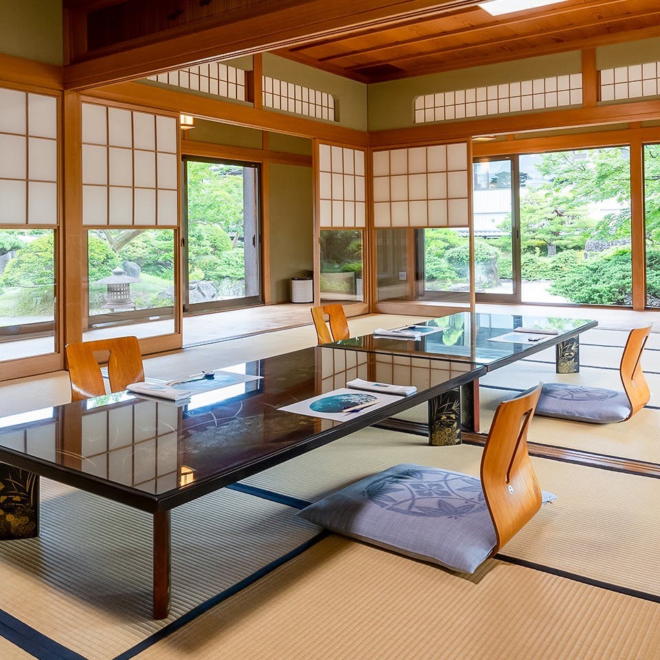 1980年、料亭「渭水苑」として開業、人生の節目に人が寄り合い絆を深め、感謝を伝え、笑顔があふれる皆さまの「家」として進化を重ねてまいりました。「渭水」とは水の集まる都のこと、水が集まるように人が集い、憩い、栄えることを願い名付けられました。眉山を臨み、湖水あり、森あり、花あり、枯山水庭園は、庭園設計の巨匠浅野二郎によるものです。