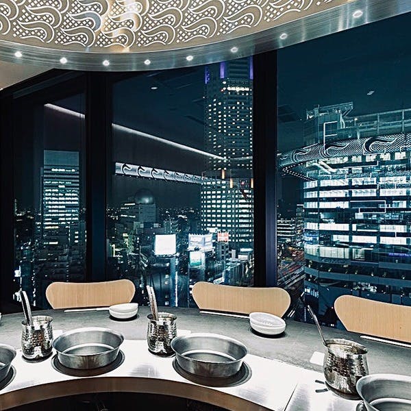スクランブルスクエア12Fから渋谷の夜景を見ながら黒毛和牛を使用した一人一鍋しゃぶしゃぶ/すき焼きが楽しめます。 佐藤可士和デザインによる大人の空間、厳選した黒毛和牛、秋田契約農家から直送する季節野菜。おすすめは「黒毛和牛肩ロースと黒毛和牛のブリスケ」のセット。ディナーは〆に肉と野菜の旨味が溶け出したスープでいただくラーメンが絶品です。