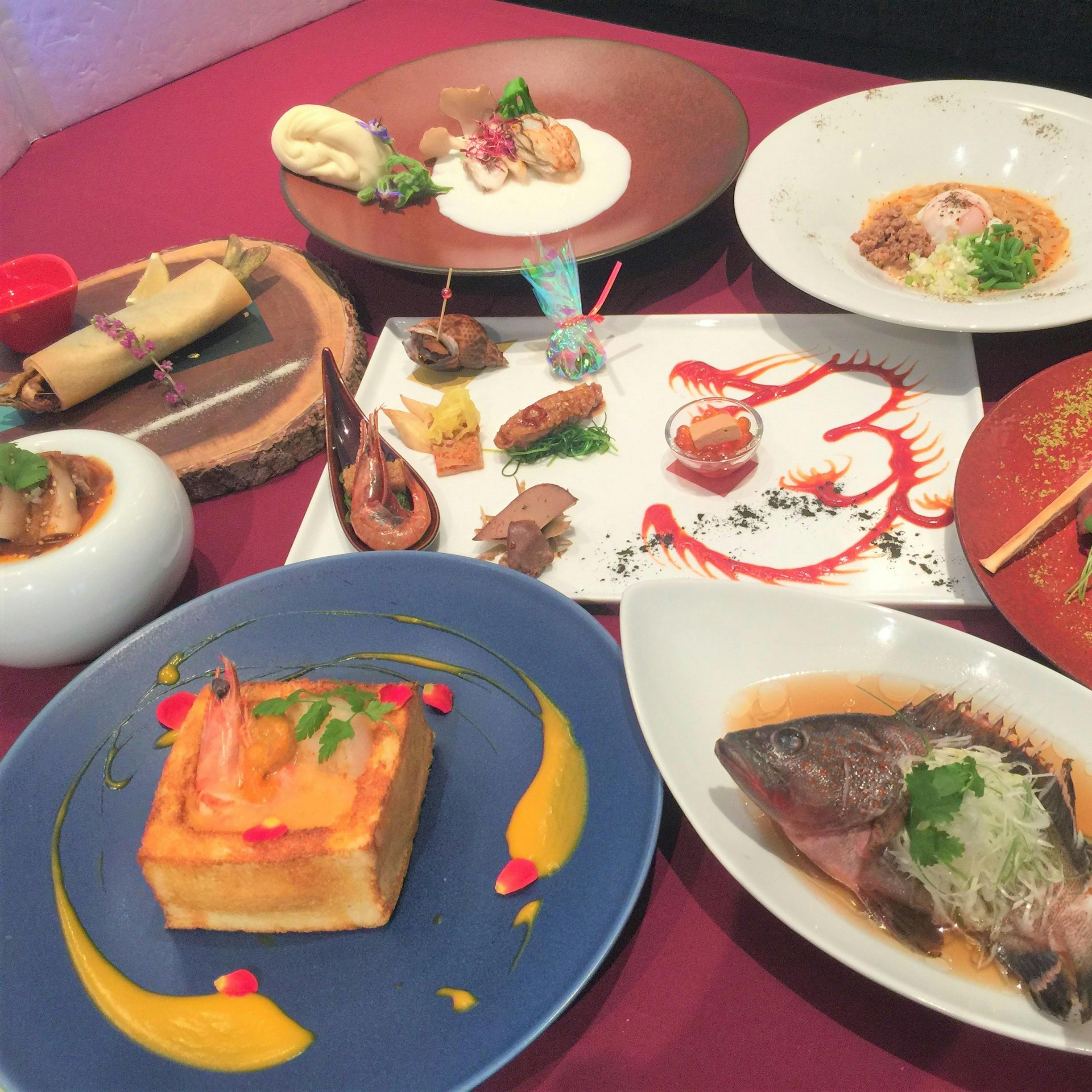 中国料理の巨匠に師事し、さらにホテルなどで実力を磨いたオーナーシェフが追求するのは『新しい中国料理の形』でございます。これまで学んだ伝統的な調理法に新しい視点を取り入れ、自分のフィルターを通したお料理をご提供いたします。店内は赤と黒のコントラストにより白を基調とした美しい空間で、広いカウンター席とテーブル席をご用意しております。エレガントでもありカジュアルな、訪れる人の心をとらえて離さない、そんな居心地の良さと華やかな逸品の数々をお愉しみください。