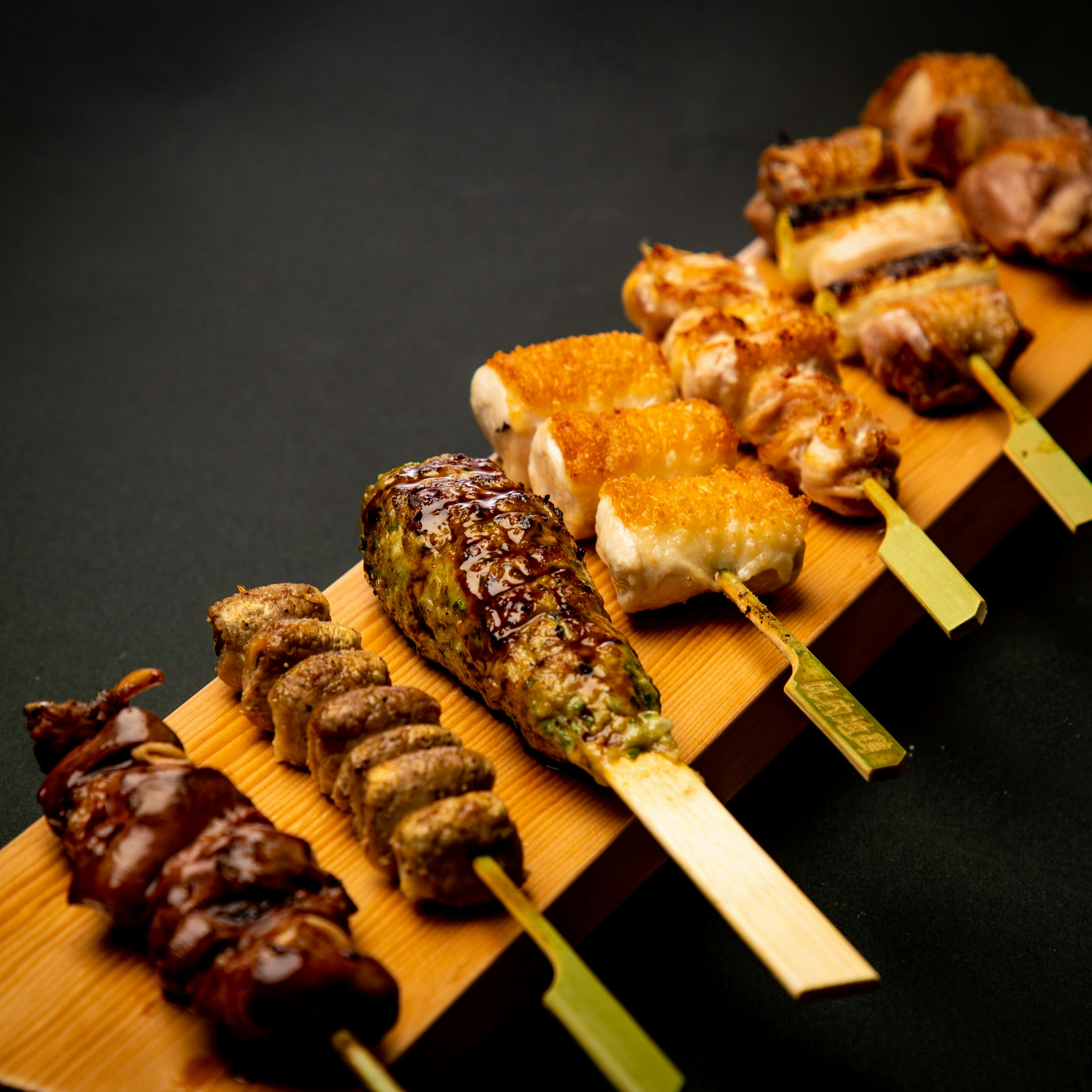 “究極の地鶏”と呼ばれる秋田県産の雌の比内地鶏を職人の手で“究極のやきとり”に仕上げます。 その他全国から取り寄せる旬の野菜、約50種の地酒や焼酎とともにご堪能ください。 ビジネスや大切な方とのご会食におすすめです。飲み放題付コースもご用意しております。