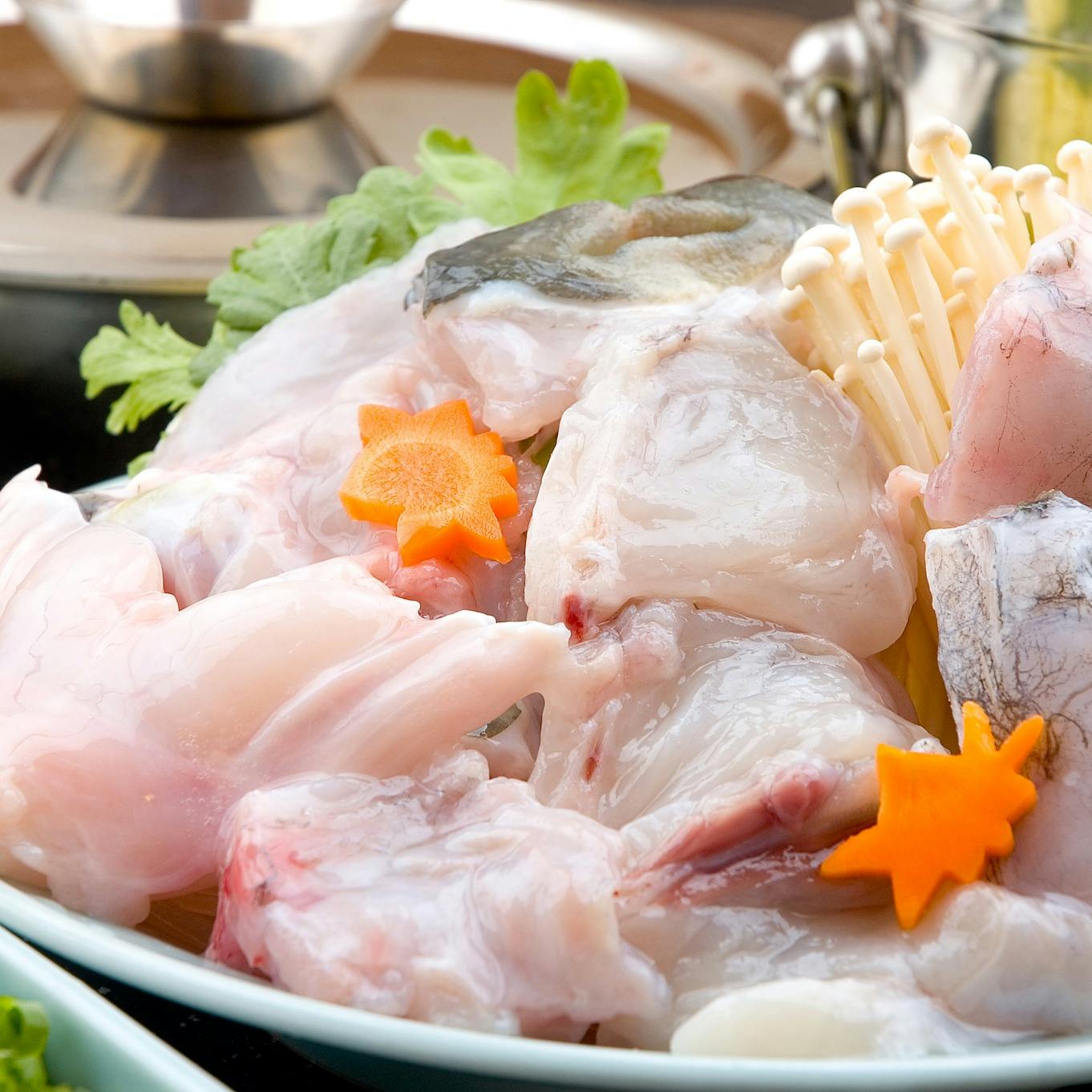 全ての料理に店前の水槽で悠々と泳ぐ1.2kg以上のとらふぐを使用。ピクピクと動くてっちりは鮮度抜群です。看板メニューの鮮てっちりをリーズナブルにお楽しみいただけます。大小個室も完備しており、いろいろなシーンでご利用ください。