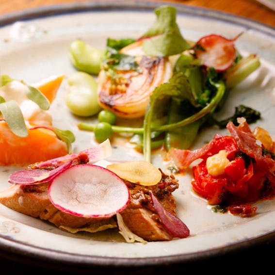 街場のレストランから三ッ星フレンチまで国内外で様々な経験を積んできたシェフ武藤恭通が独立したお店。馴染みのあるフランス郷土料理やバスク料理をベースにしつつ、オセアニアや台湾の食材を取り入れるなどシェフの経歴を生かしたひねりのあるメニューをご提供いたします。店内では料理に使うマスタードやオイルなどのグロッサリーの物販もしています。