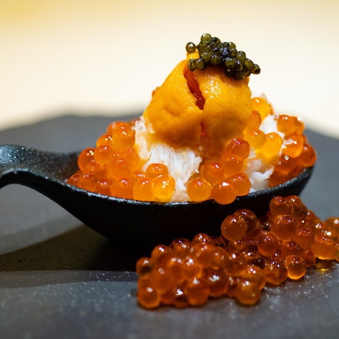 料理長厳選の食材から作る美しい料理と本格江戸前鮨を併せたコースをぜひお楽しみください。食材は、四季折々の恵みを携えた旬のお野菜や魚介を中心に厳選いたします。素材、味、彩り、匂い、雰囲気、サービス、お客様の満足度を徹底的に追及したお店でお届けします。