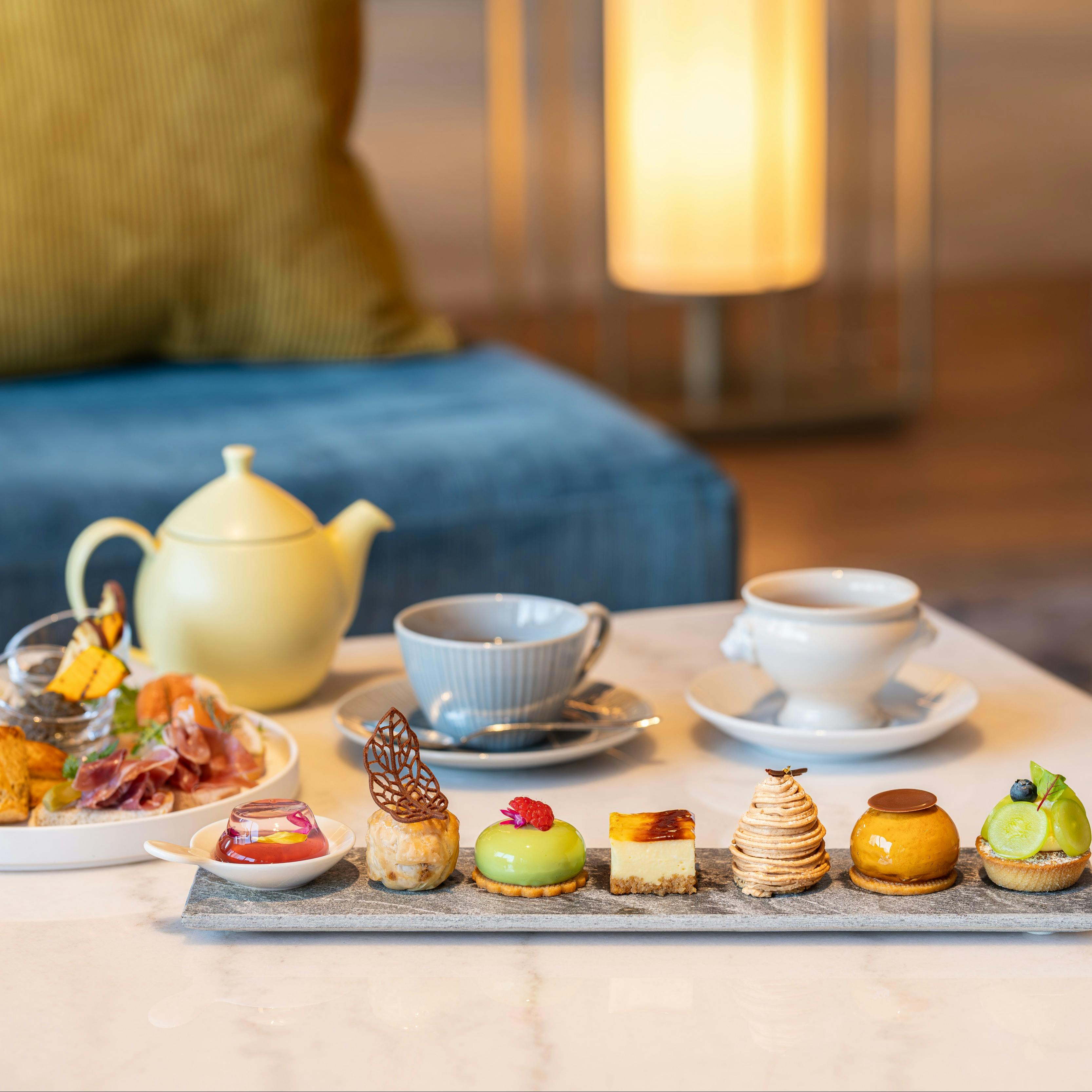 ラウンジの洗練された雰囲気の中で、優雅なティータイムを