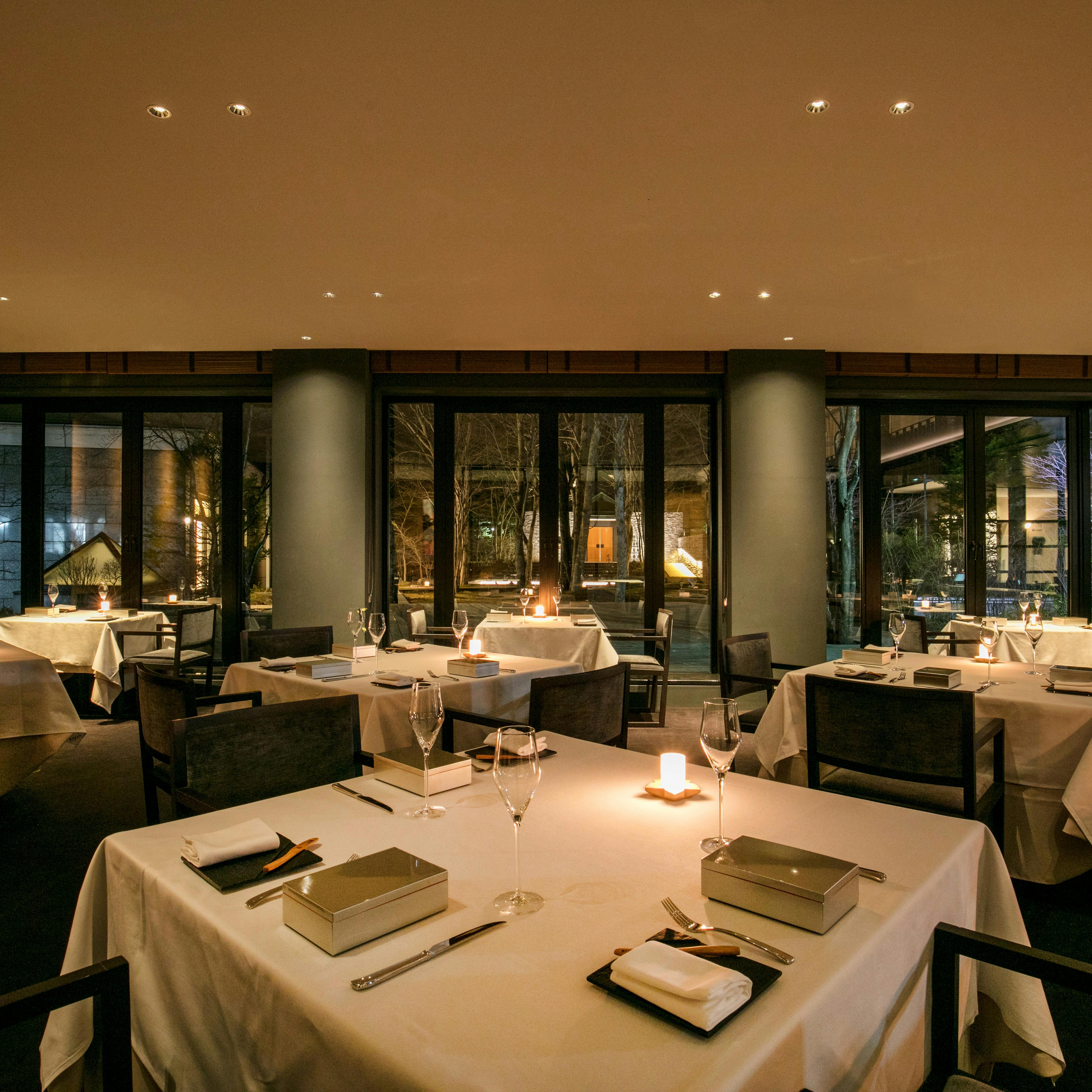 豊かな緑に囲まれた【KYUKARUIZAWA KIKYO, Curio Collection by Hilton】の中にあるイノベーティブレストラン【SONORITE(ソノリテ)】。供されるのは、プロローグからエピローグへと流れるように進んでいくコース仕立てのイノベーティブ料理です。フランス語で「共鳴」を意味する店名の通り、匠なシェフの技により食材と食材が見事に共鳴しあって、珠玉の一皿に。