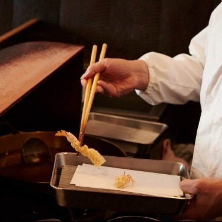 毎朝築地から厳選して仕入れた新鮮な旬の食材を一品一品、こだわりの油・小麦粉・塩を使用し丁寧に心を込めて揚げております。お料理だけでなく、ゆったりとした店内は心休まる空間となっております。落ち着いた空間の中で揚げたての天ぷらをお楽しみください。 素材の味を堪能するためにも、ひと口目は是非お塩で。パキスタン岩塩はまろやかな口当たりで、天ぷらの味を更に味を引き立てます。