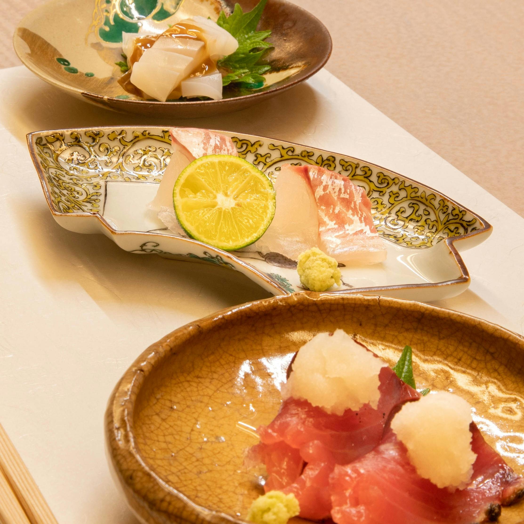 心温まる割烹料理が織り成す特別なひとときをお楽しみいただけます。炭焼き料理や自慢の出汁がきいた煮物を始め、大阪の伝統野菜と関西を中心とした新鮮なお魚を贅沢に取り入れたお料理を、「浪速割烹 喜川」にて15年修行を積んだ料理長が一品ずつ丁寧にご用意いたします。職人技が光るライブ感溢れるお席で、心を満たす至福の逸品をご堪能ください。