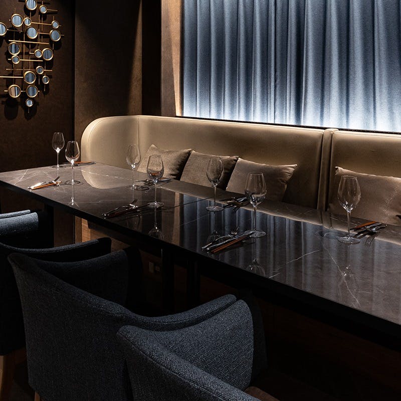 ミシュラン「2つ星有名店」出身シェフを総料理長にむかえ、世界最高峰のフレンチレストランの技術を王道料理に注ぎ込む。 個室もご用意がございます。 デートや接待など、様々なシーンでご活用ください。