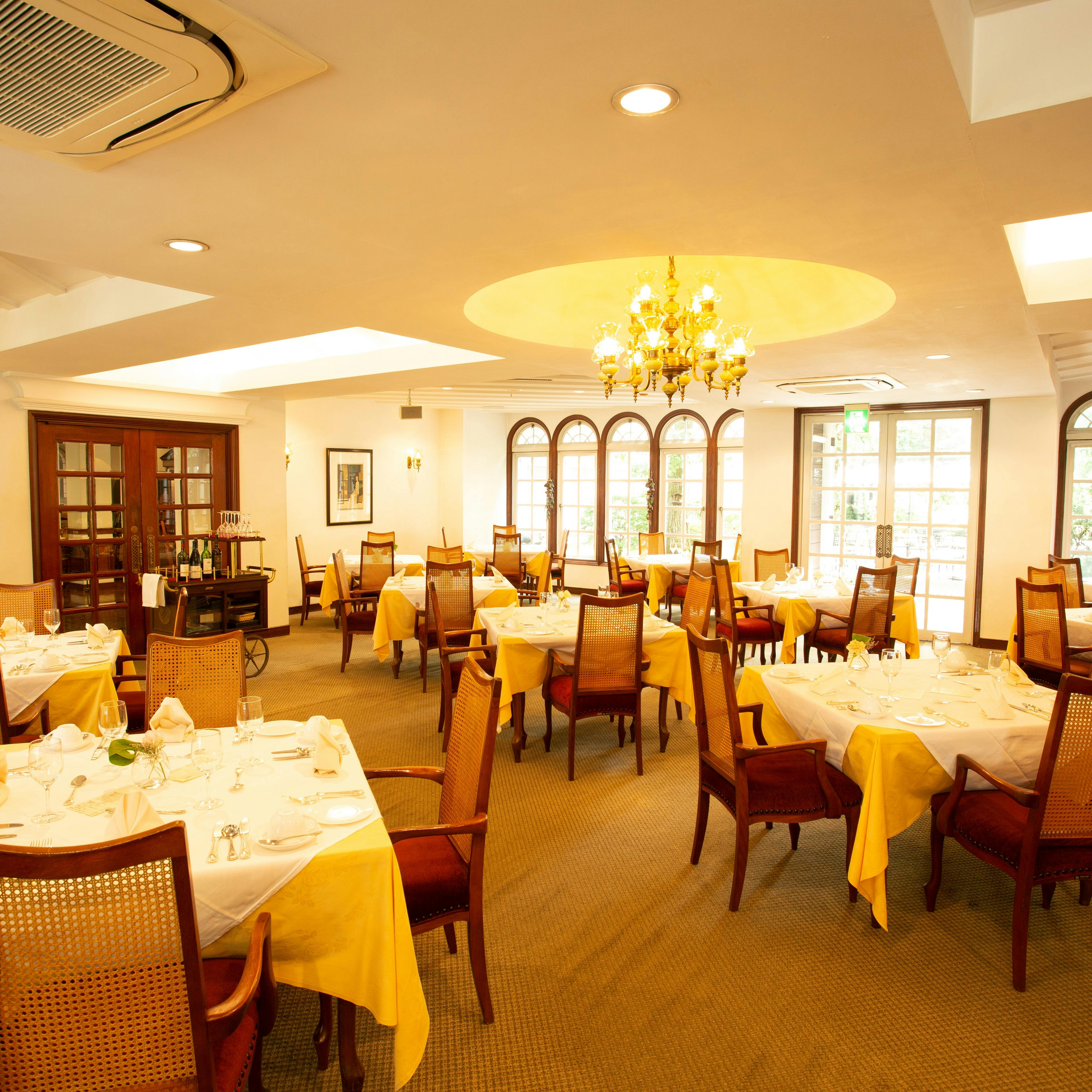 音羽ノ森創業当時のままのクラシカルなフレンチレストラン。ガーデンに面した店内からは、軽井沢の四季折々の景色が楽しめます。落ち着いた雰囲気の中、ゆったりとした時間をお過ごしください。