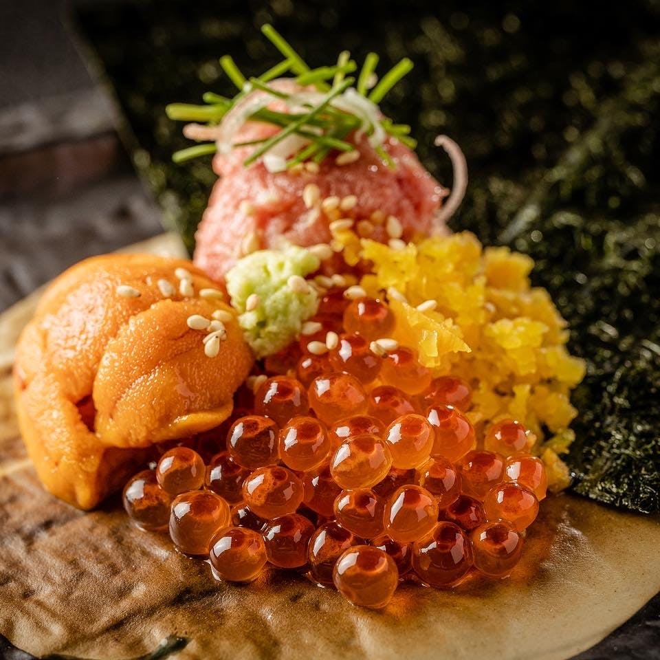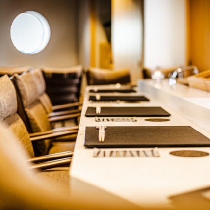 シャリは赤酢と北海道産のお米を固めに炊き上げ、砂糖を少なめにしたさっぱりとした味わい。当店では、職人が心を込めて丁寧に仕上げた、江戸前鮨ならではの味をお愉しみ頂けます。また大将が若い頃、先輩が作っていた思い出の「弥栄特製ばくだん」も自慢の逸品。鮨やお料理と好相性の、種類豊富に取り揃えた日本酒とご一緒にどうぞ。店内は高級感ある上質な内装でありながらも、肩肘張らずゆったりとお過ごしいただける空間です。