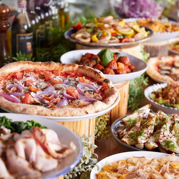 ナポリピッツァを日本に広めた第一人者、サルヴァトーレ・クオモがプロデュースする「The Kitchen Salvatore Cuomo」。ダイニングからは、本格ピッツァ窯のあるオープンキッチンの中でシェフたちが腕を振るう姿をまるでシアターのように眺められ、“Kitchen”に直接招かれたようなライブ感が味わえます。もちもちとした食感のピッツァ、産直野菜や旬の魚介を使ったパスタやメイン料理。ワインは約80種類を常時取り揃えており、お料理に合ったワインをセレクトするのも楽しみの一つです。