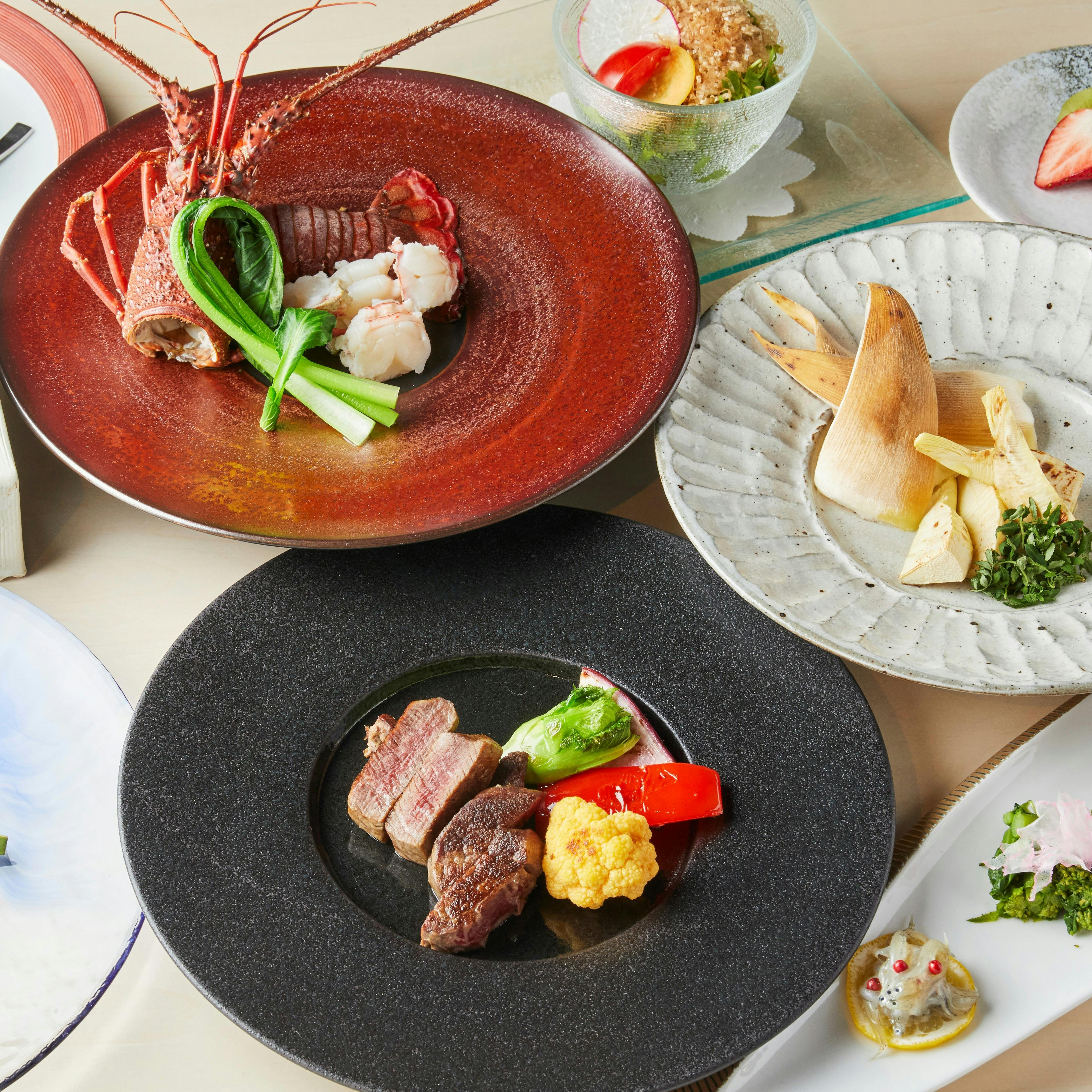 喧騒から離れ静寂の中で、大切な方との一時をお過ごし頂けるよう、最高級の黒毛和牛はもちろん、伊勢海老や黒鮑など新鮮な食材をご用意してお待ちしております。厳選して仕入れた旬な食材をお客様の目の前で焼き上げるシェフ熟練の技、鉄板焼きの醍醐味を是非五感でお楽しみください。