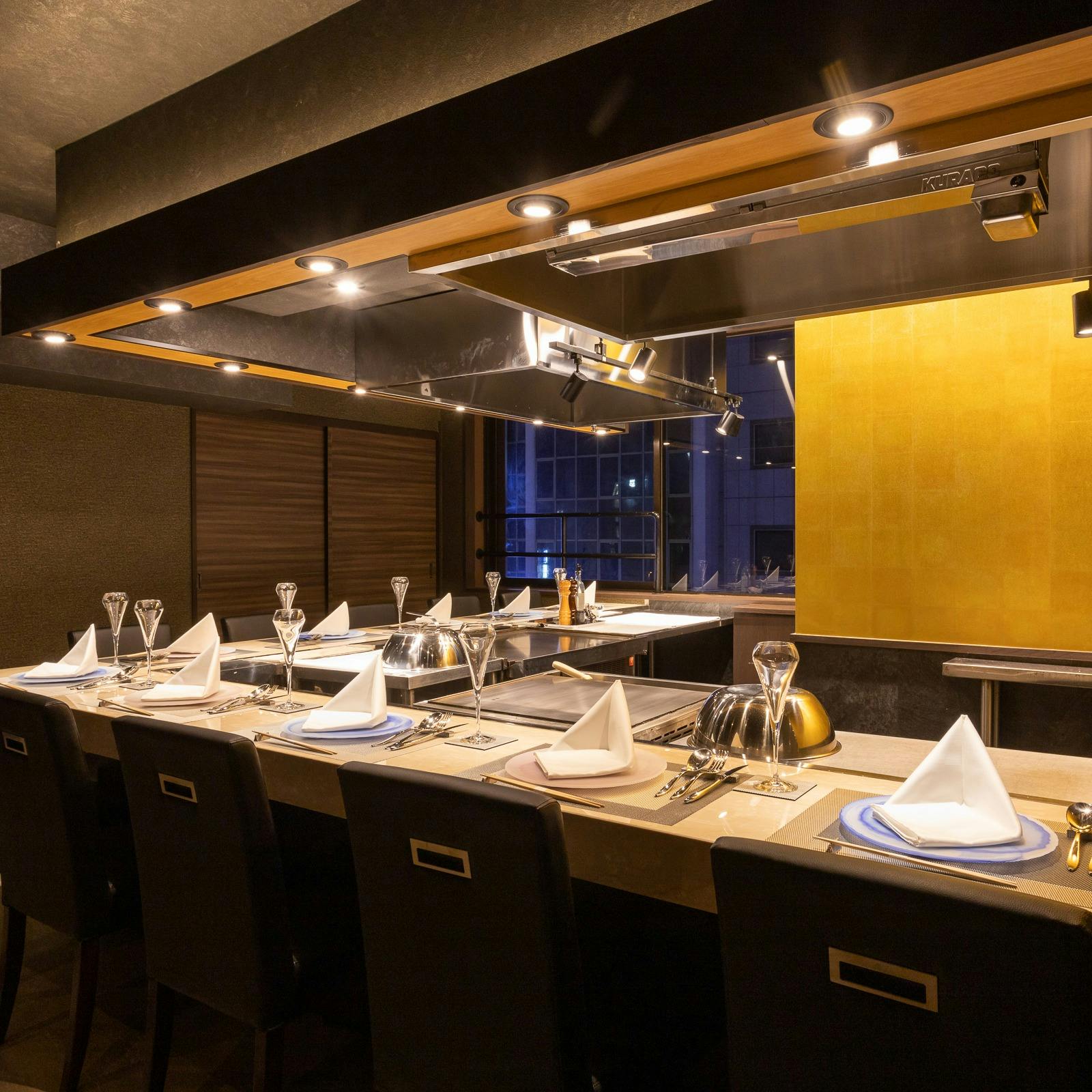 愛情とこだわりを注ぎ育てられた、最高級A5ランクの黒毛和牛。自慢の食材を鉄板焼きでご提供致します。柔らかいお肉と芳醇な香り、口に入れた瞬間にトロける上質な味わい。記念日は勿論、会食や接待など様々なシーンに最適。贅沢カウンターは大人の空間として最高のひと時をお過ごし頂けます。