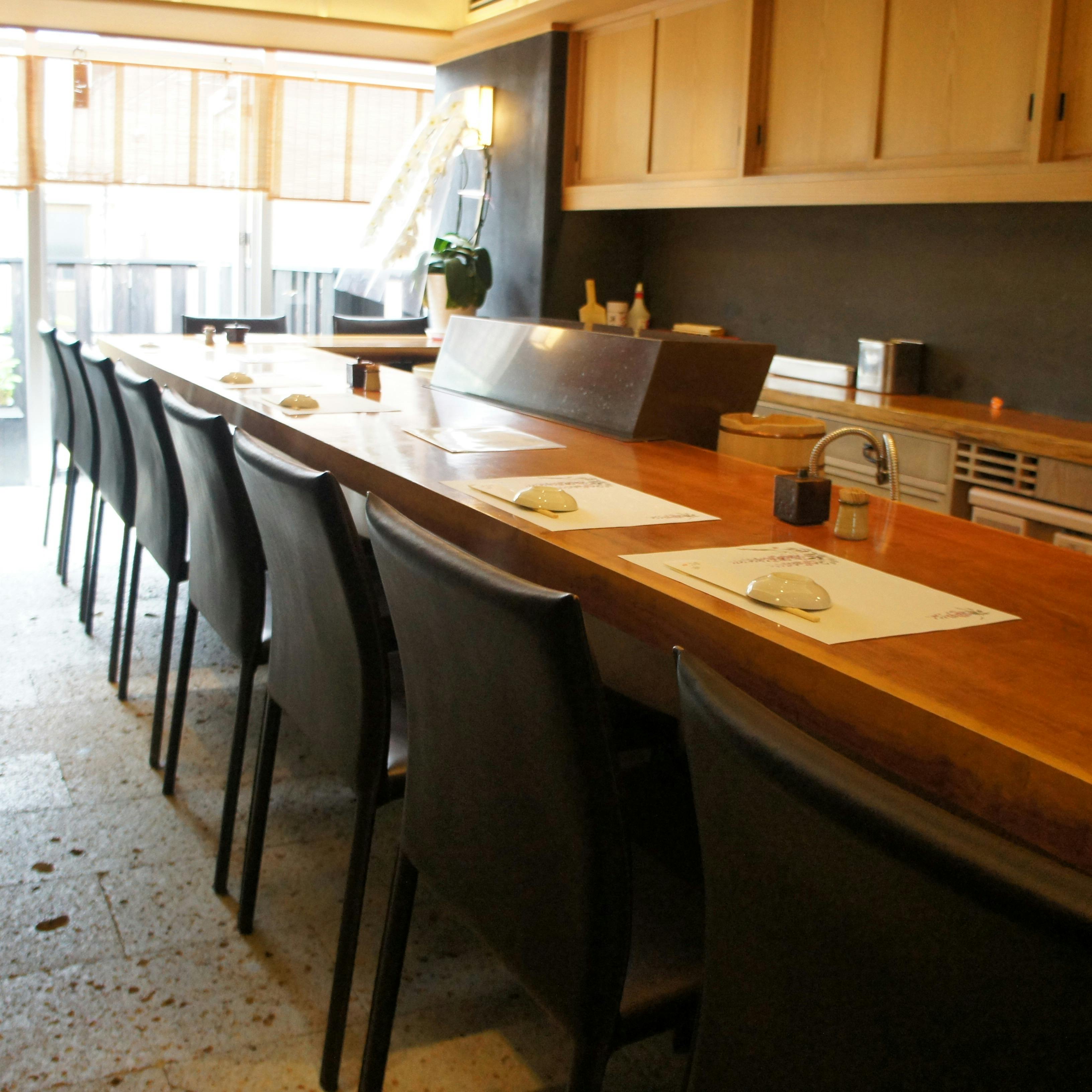 落ちついた店内は一席一席にゆとりがあるので、デートやビジネス接待まで気軽に優雅に多くの方に楽しんで頂ける空間です。板長厳選のネタを取り揃え、旬の鮨をご提供しております。極上の黒マグロや雲丹、穴子、牡蠣など、こだわりの旬の食材に合わせ、日本酒、焼酎も豊富に取り揃えております。大切な方と素敵なひと時をお過ごしください。