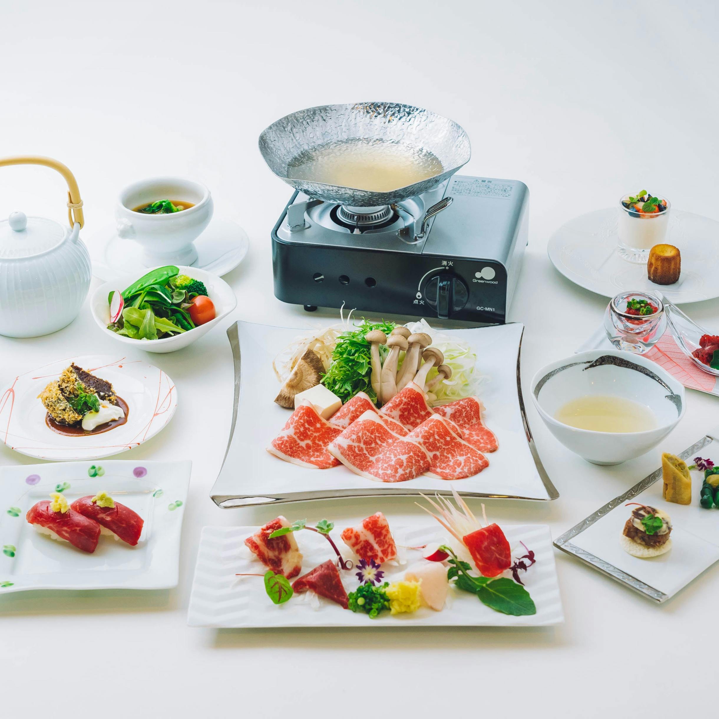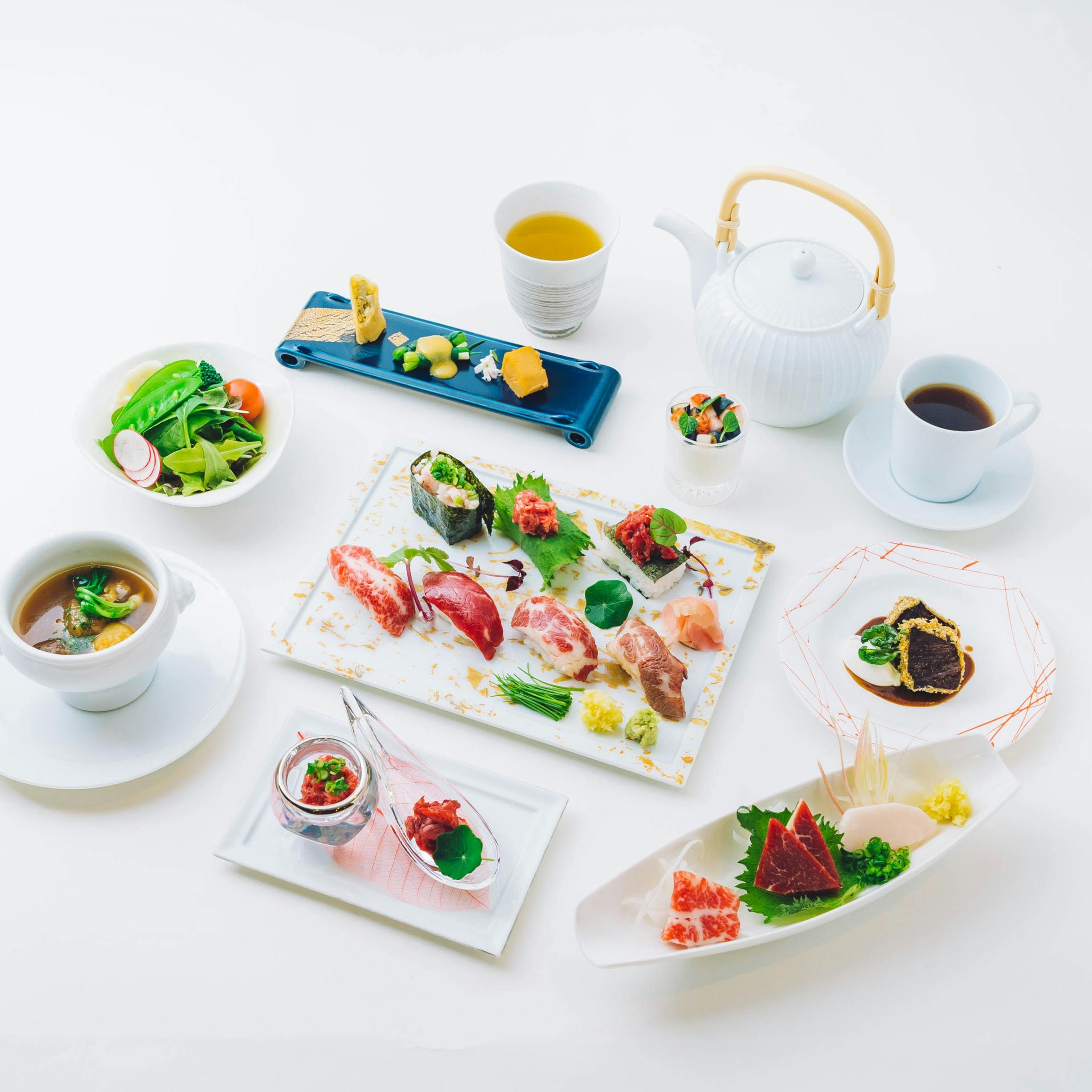 美しく盛り付けられた馬肉料理をコースでご提供致します。これまでの馬肉料理の概念を覆す料理の数々をお楽しみください。馬肉を追求した職人が、和食とフレンチの良さを融合し、至極の馬肉創作料理に仕上げました。前菜からデザートに至るまで、”馬肉”と”熊本”にこだわった料理を是非ご堪能ください。