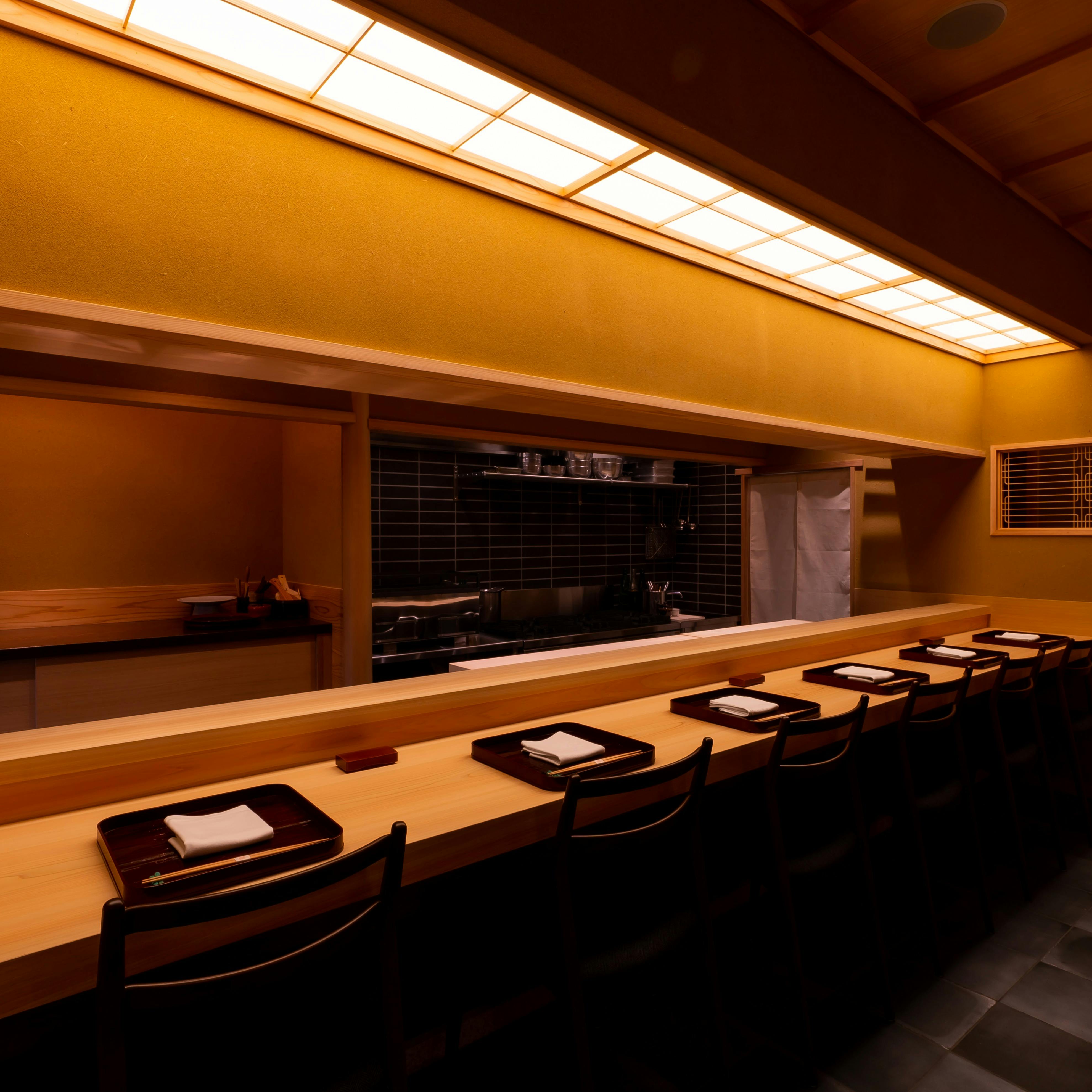 隠れ家的外観が特徴の「まる富」。趣のある和の空間で饗されるのは、主人の感性が散りばめられたおまかせ会席のみ。淡路の鱧や日本海の香箱蟹、豊後直送の天然とらふくなど旬の食材が、丁寧な包丁捌きによって姿を変えていく。伝統を守りつつ、独創性にも溢れた一皿には、客人たちの驚きと感動が降り注ぎます。美しく盛り付けられた四季の情緒を、ゆっくりとご堪能ください。