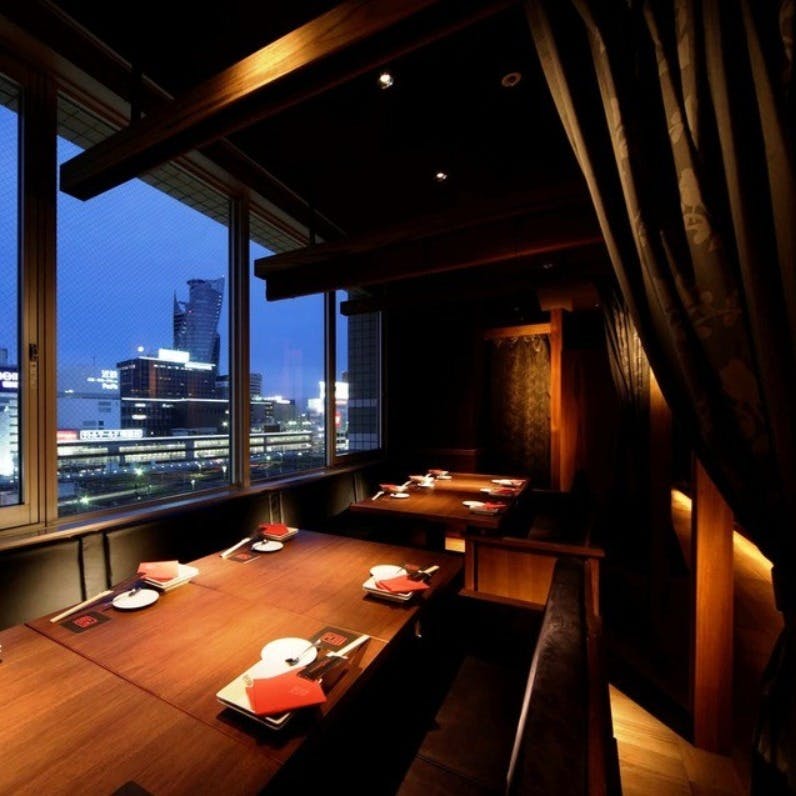 名古屋駅の高層ビル群を望む上質な空間で、創作料理を堪能