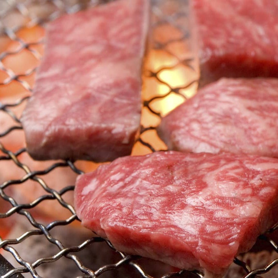 松阪牛焼肉Mでは、松阪牛の枝肉を一頭丸ごと買付けしているため、さっぱりとした赤身のモモ肉から、たっぷり霜降りのサーロインまで、種類豊富に松阪牛を味わっていただけます。枝肉一頭買いを行っている当店ならではの醍醐味です。一般的な部位はもちろん、一頭からわずかしかとれない稀少な部位や、ホテルやステーキハウスなどで提供するようなプレミアムなお肉も、お手頃に味比べしていただけます。