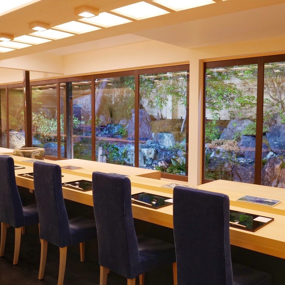 南禅寺より移転し、二条城と京都御苑の間に店を構える【京都 さえき】。以前と変わらず、庭園を望む京都随一ともいえる絶景の空間で皆様をもてなします。今をときめく鮨に酔いしれる贅沢なひとときを過ごしてみてはいかがでしょうか。
