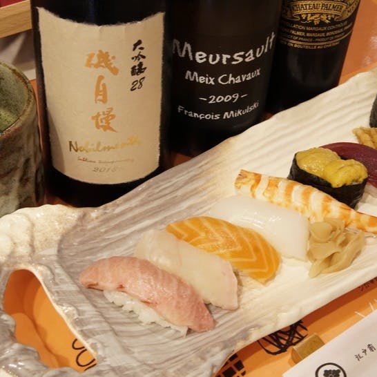 オールドワールドを中心に80アイテムほどご用意しております。グラス1杯から楽しめる ソムリエが選ぶワインをはじめ、厳選した日本酒も多数取り揃えております。季節によって変わる旬のネタとともにお楽しみください。