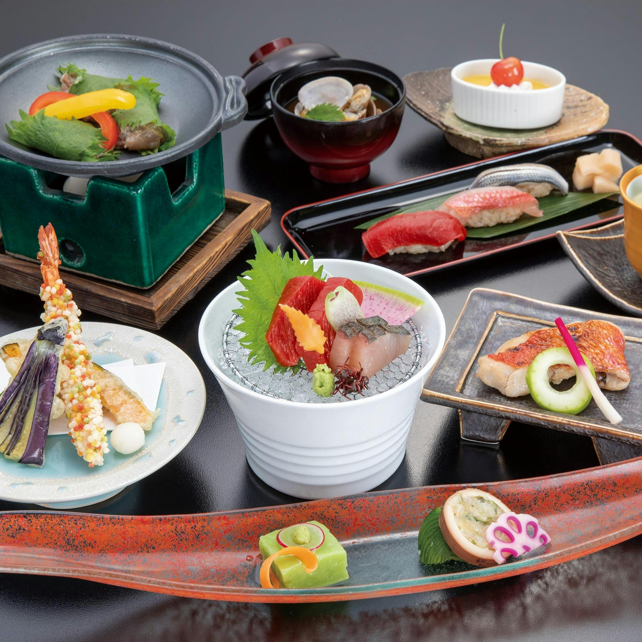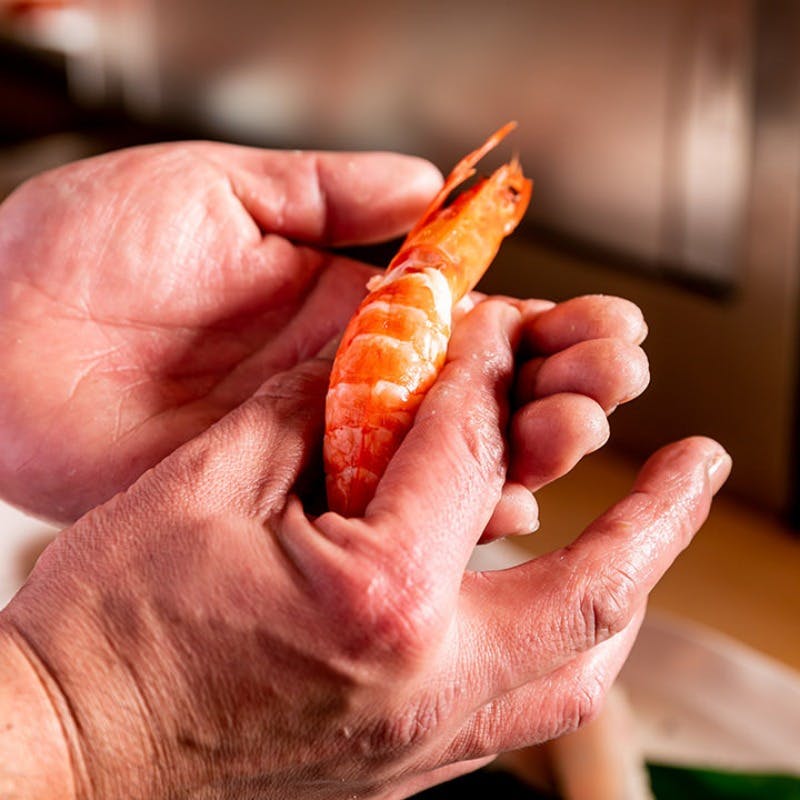 一軒家タイプの和情緒に富んだ空間の中で、至福のひとときを。鮨職人の確かな技が光るにぎりや酒肴をご堪能いただけます。店内生簀の漁港から直送された伊勢海老やヤリイカ等、新鮮な魚介もおすすめです。