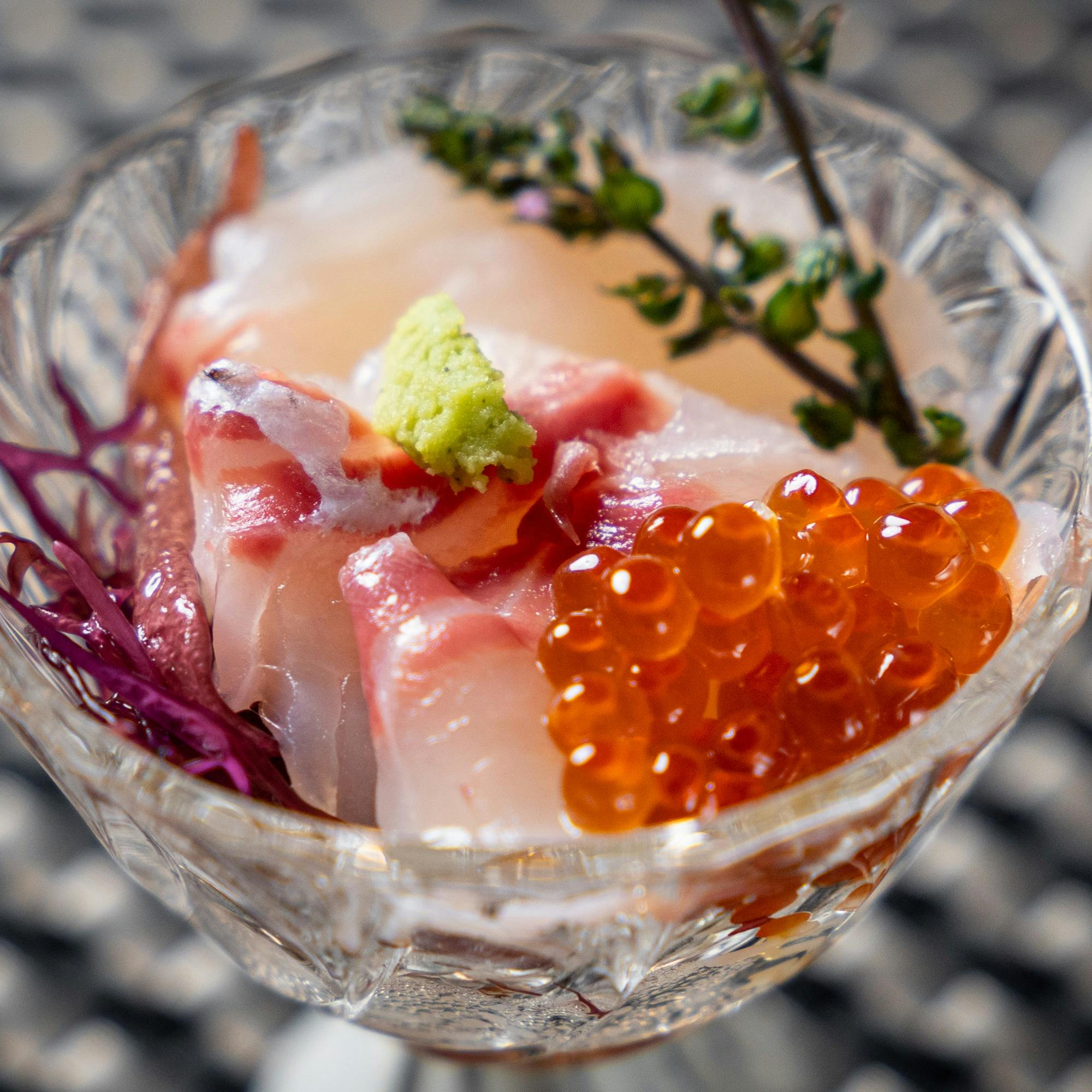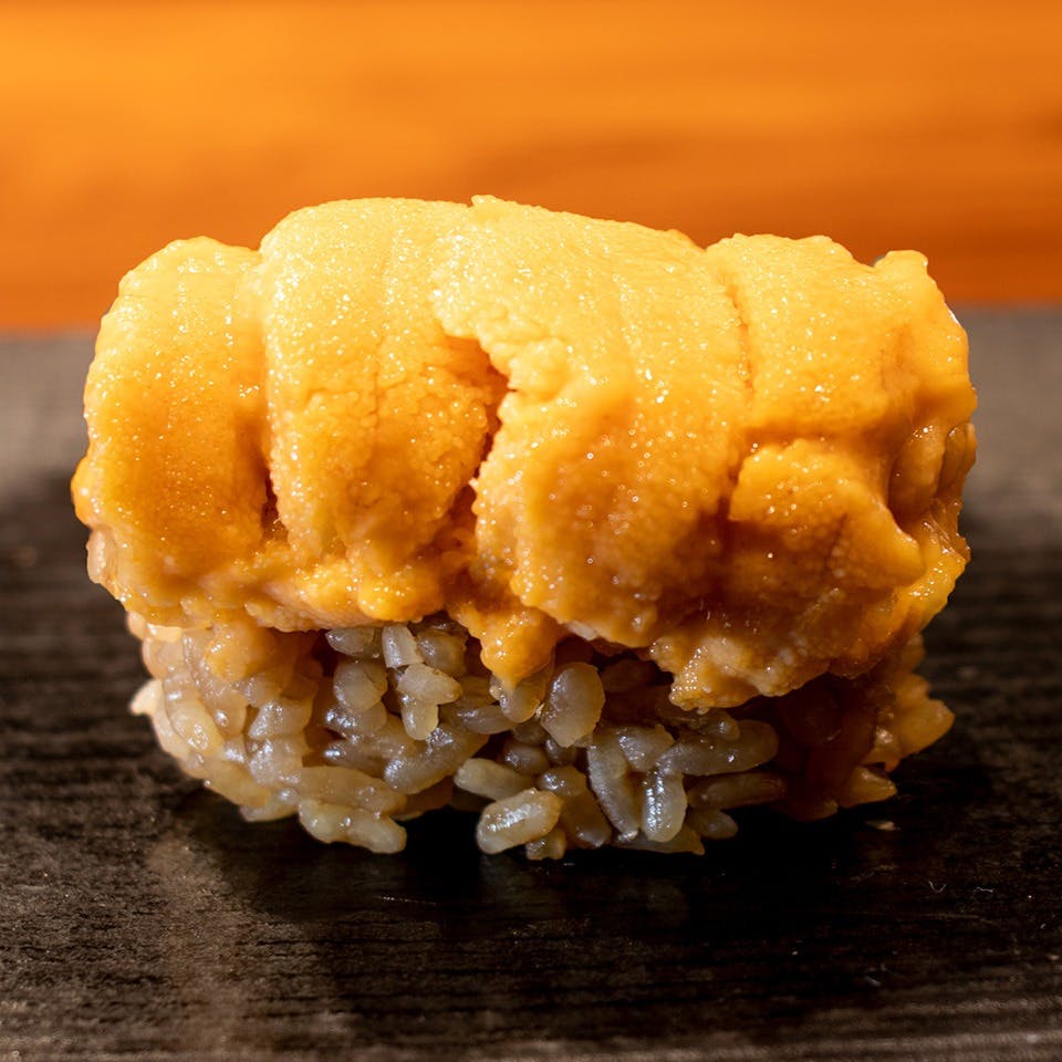 鮨のネタは極上の天然物を使用。その時期にしか味わえない旬の食材を厳選して丁寧に作り上げた逸品料理と熟練の握りを織り交ぜてご提供いたします。長年の研鑽によって培われた流麗な所作で変貌を遂げる芸術的な一皿を一連のコースでお届け。大人の雰囲気を醸し、落ち着きのあるカウンターで正統派本格江戸前寿司をご堪能いただけます。