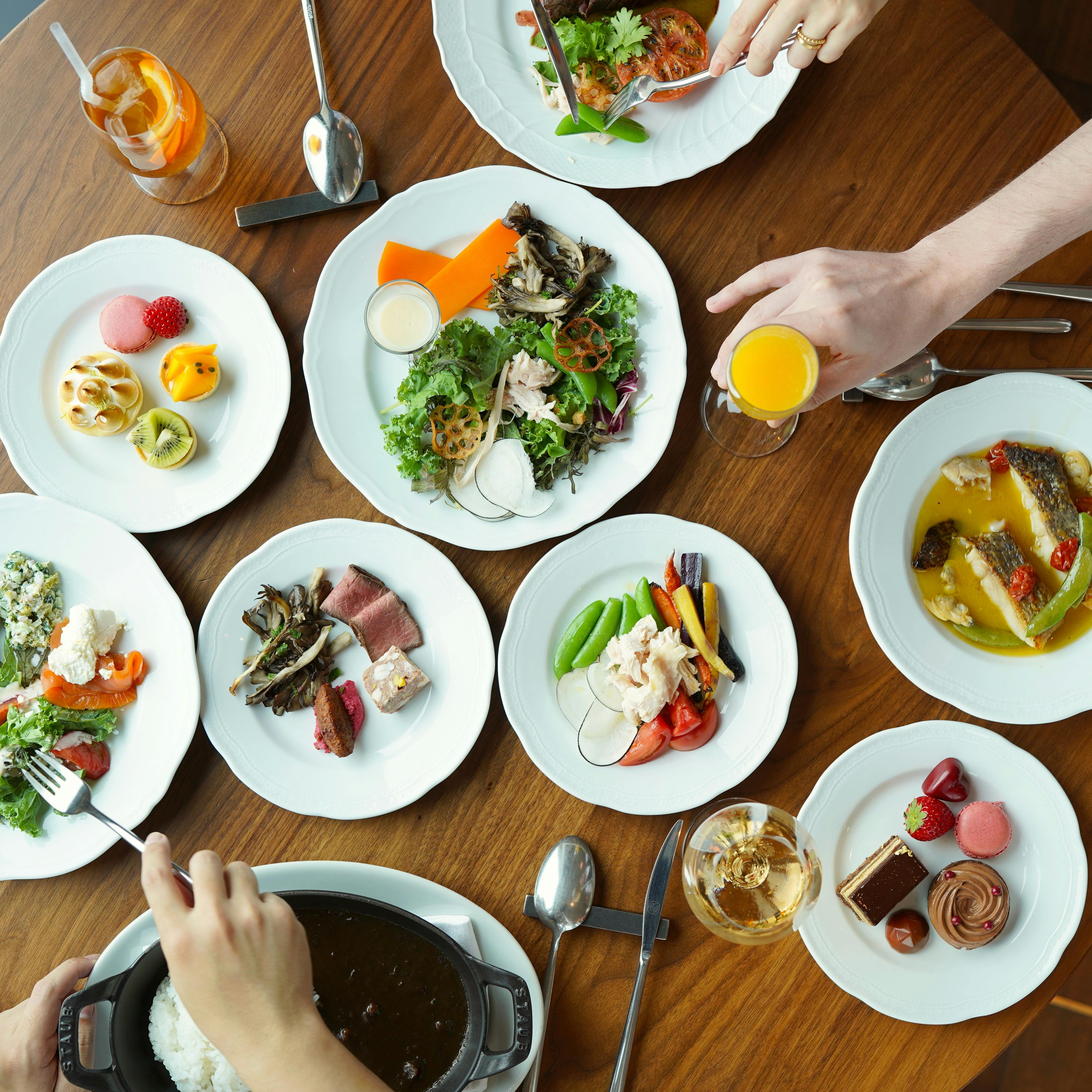 ホテル最上階にありながら、肩ひじをはらず和やかな空間でお過ごしいただけるトラットリア。ライブ感溢れるオープンキッチンの店内では、毎日全国各地から届く旬な食材を本場イタリアの調理法を通して表現。ソムリエ厳選のクラシックワインからナチュールワインの数々と共にお楽しみいただけます。 また、週末限定でホリデーランチビュッフェをお楽しみいただけます。 前菜とデザートは約30種類以上のビュッフェスタイル、メインディッシュはお好きなひと皿をお選びいただけます。 乾杯にはグラスシャンパンをご用意しております。その他はバイオーダーでお時間まで、心ゆくまでごゆっくりお過ごしいただけます。