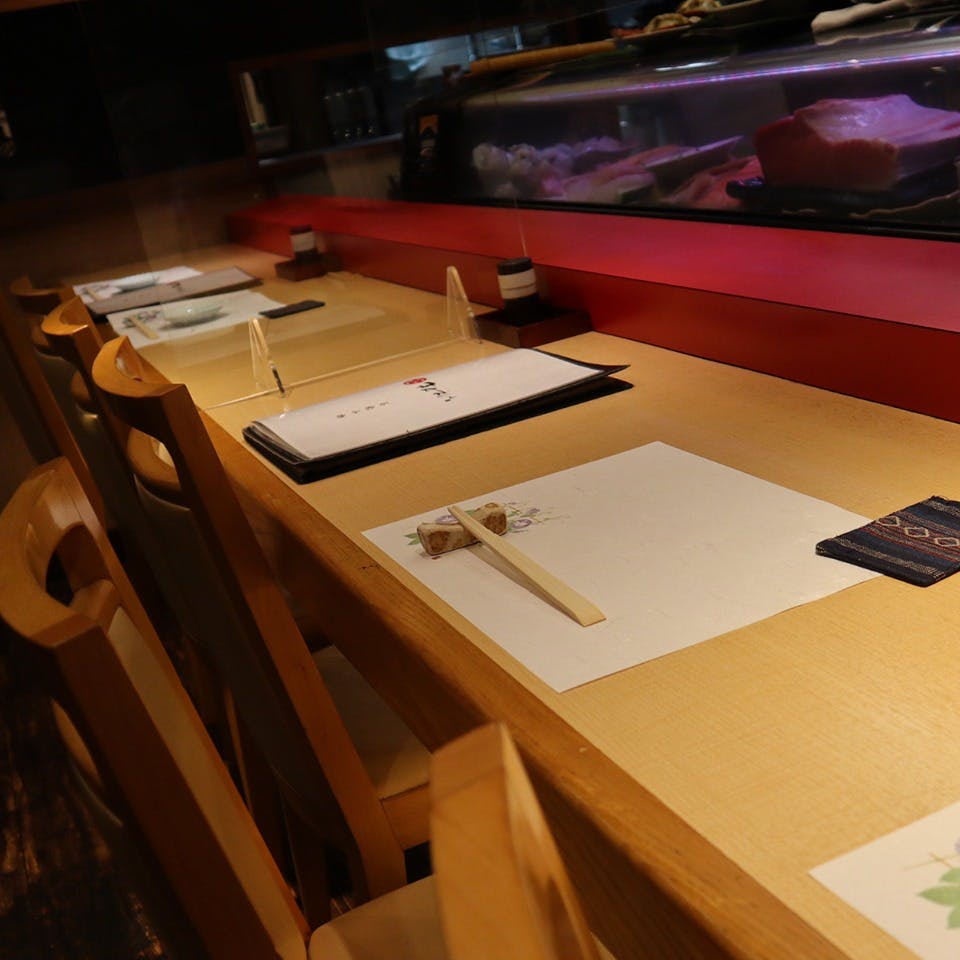 九州の地魚から北の海鮮まで、店主が吟味した魚を寿司・一品料理でお届けいたします。新鮮で脂がのった九州産マグロ、北海道のうになど様々。酢飯は、お持ち帰りでも美味しく楽しめる柔らかさです。また、移ろう四季を感じられる旬食材の一品もご提供。お食事に合う日本酒は、厳選された20種以上をご用意いたしました。特別な場面には大将のおまかせコー スがおすすめ。赤が映える木目の店内で、ゆったりとお過ごしください。