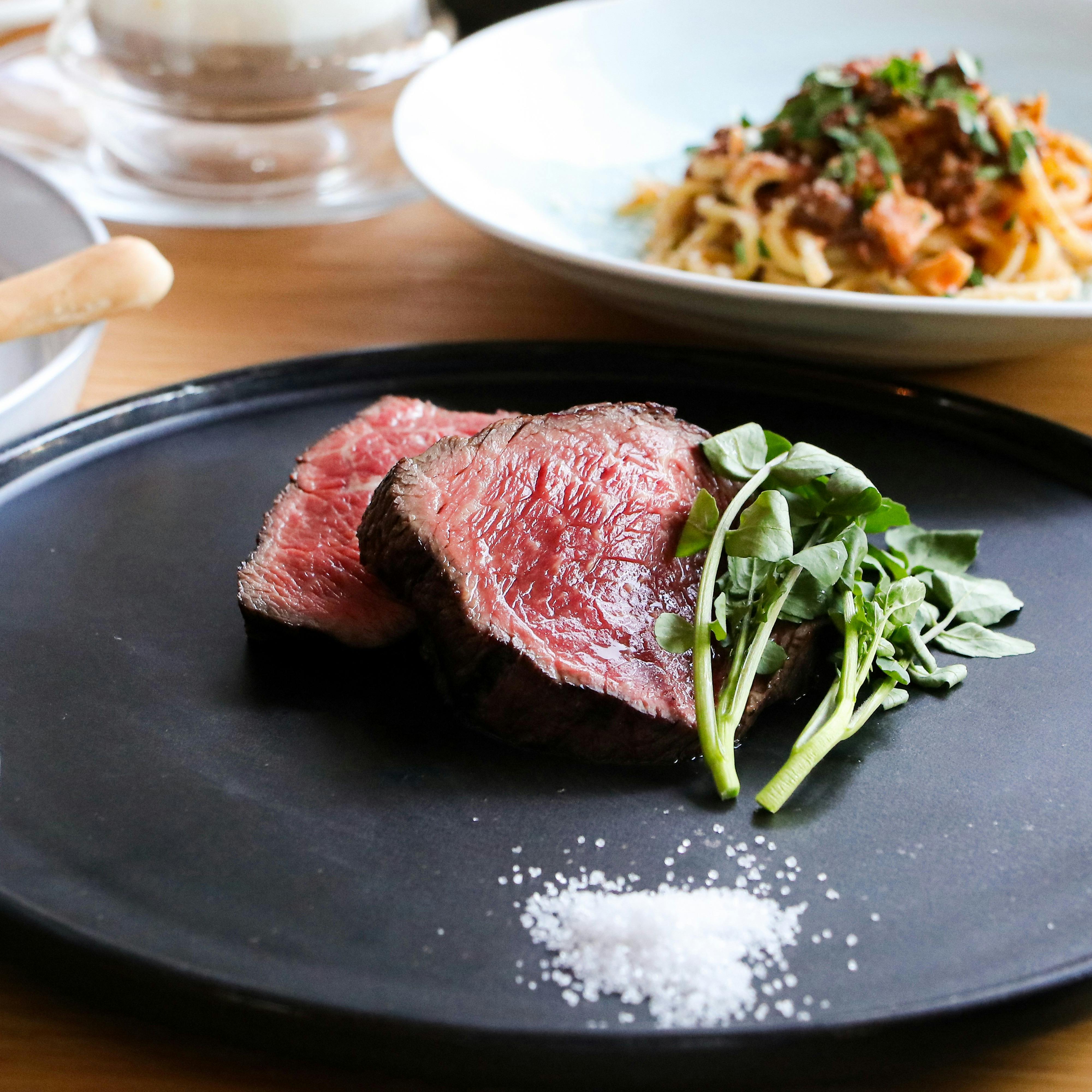私たちが大切にしているのは、宮崎の自然が育む大地の恵みです。当レストランが自信を持ってご提供する牛肉は、雄大な霧島連山の麓、都城市高崎町の牧場で、 私たちが大切に育てた“霧島和牛”を使い、店内で宮崎県産の薪を使用し豪快に焼き上げます。自社牧場から生まれた堆肥は契約農家様へお配りし、野菜作りに再利用して頂き、その大切に育てられた新鮮なお野菜はレストランで使用しています。「The TERRACE」では自然との繋がりに“おいしい”を通して触れていただき、生産者と料理人の素材に対する敬意と情熱をお客様へお届けします。