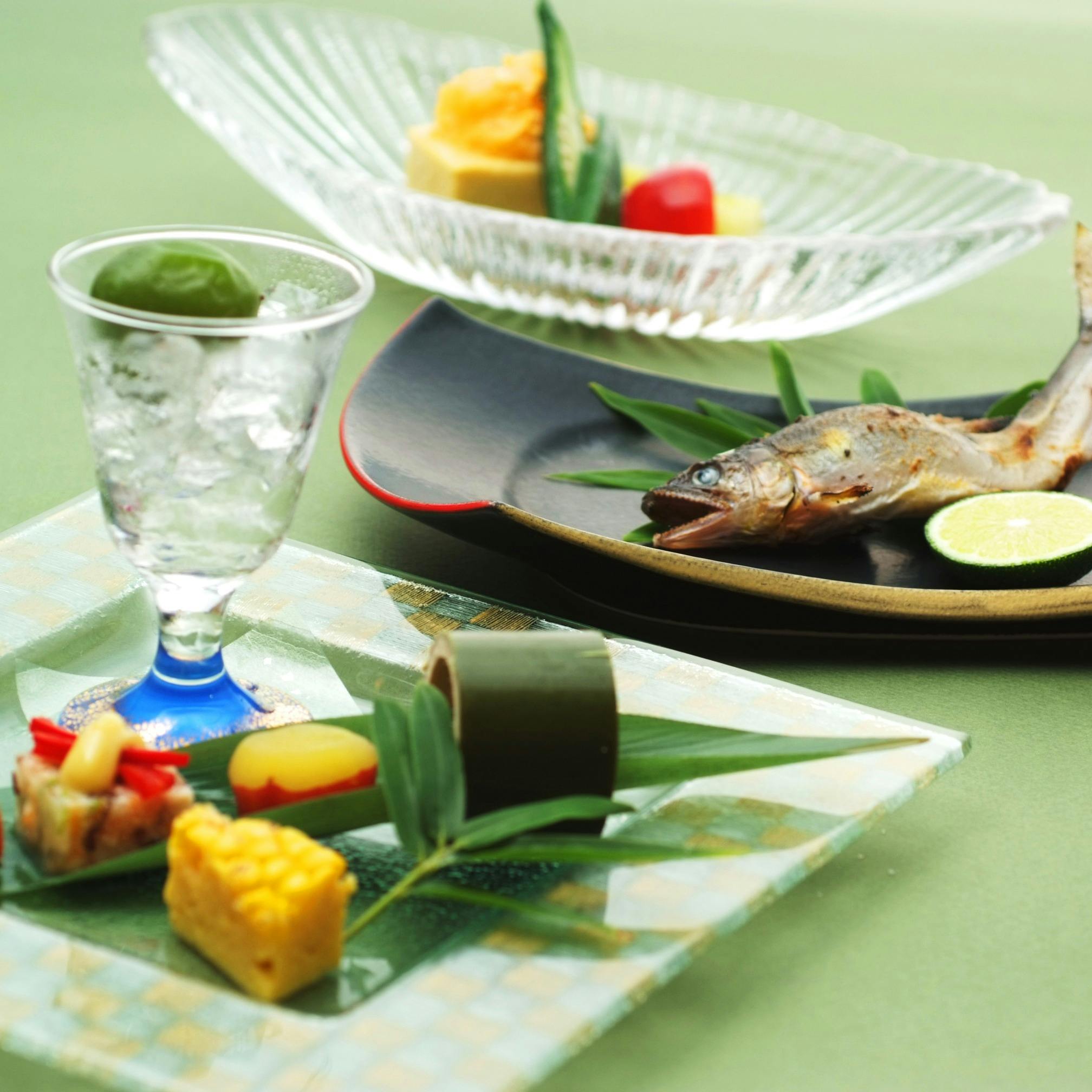 今話題の隈研吾氏が設計のザ・メイビア宮崎内の【創作料理と鉄板焼き 竹彩】は、四季折々の旬の素材を使った会席料理と鉄板焼きのレストランです。 アートのように鮮やかな彩り、旬野菜や宮崎県産牛を堪能できる会席コース。 掘りごたつ席でゆっくりと楽しめます。 落ち着きのある和の雰囲気で、接待や記念日にも。 カウンター席での鉄板焼きは、目の前でシェフが焼き上げる宮崎牛や魚貝は、旨味がぎゅっと閉じ込められた逸品。
