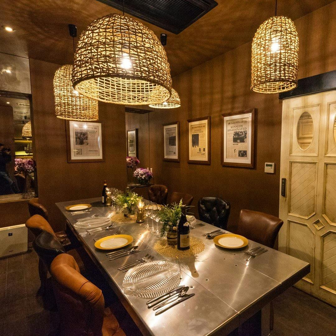 ゴールドに光る大理石のゆったりとしたカウンター席、クリスタルのシャンデリアが煌めく天井etc…ヴィンテージモダンをコンセプトにしたデザインの高級感溢れる店内。こだわり抜いた自慢の料理は“厳選和牛”のグリルなどを中心としたお肉料理をお楽しみ頂けます。ソムリエ厳選ワインやシャンパン、バーテンダーが作るカクテルと合わせて、特別な時間をお過ごし下さい。