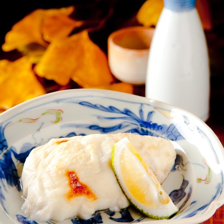 【天然とらふぐ】に開店以来こだわり続けているお店です。養殖ふぐは一切お出ししません。現在お店や旅館等で出される[国産とらふぐ]はほぼ[養殖]です。養殖との価格の差が5~6倍になることもある【天然のとらふぐ】は自然界の大きな海で自由に泳ぎ回っているため、ぷりぷりとした 弾力のある良質な食感をもち、天然ならではの濃い味が絶品です。生きる場所を自分で自由に選んで育ち、自由に餌を食べて成長した自然な姿そのものの天然とらふぐの良さをご自身の舌で是非ご賞味ください。