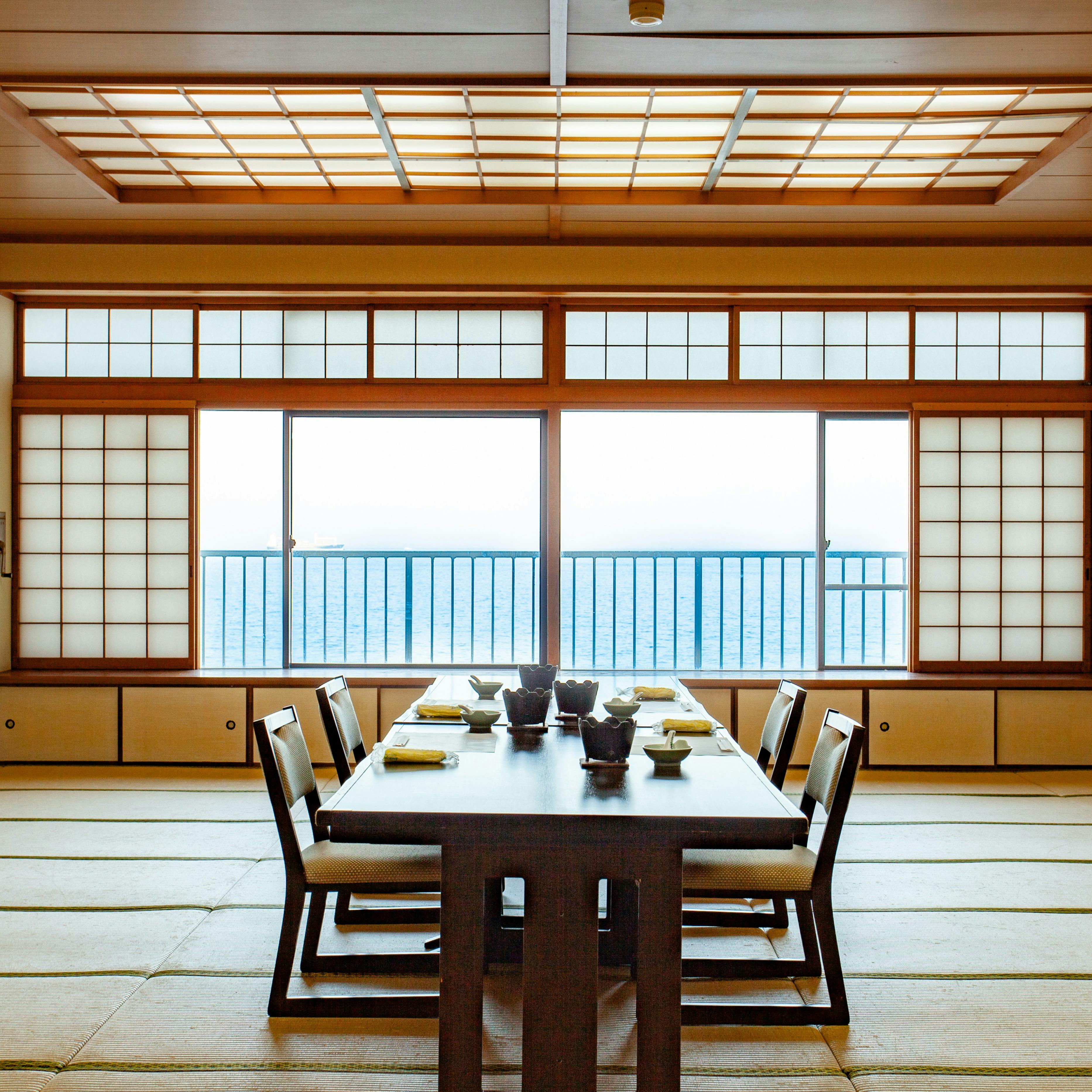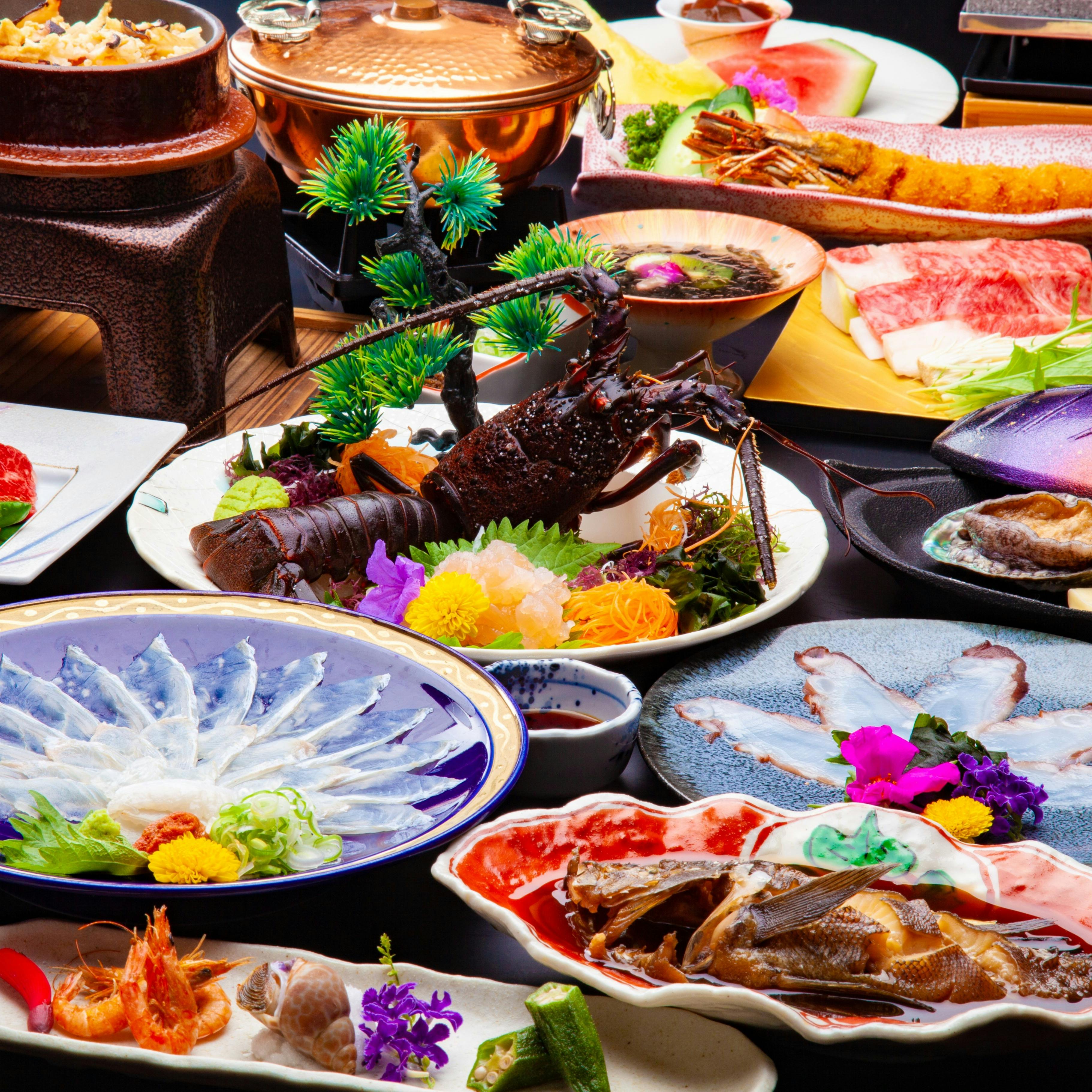 最高のロケーションをお楽しみいただける【ホテル小野浦】。お食事処では伊勢湾と三河湾の海の幸や、舌にとろける「知多牛」など、地元の食材を厳選して仕入れ、匠の技で逸品に仕立てます。愛知・知多半島の地酒とともにご堪能ください。