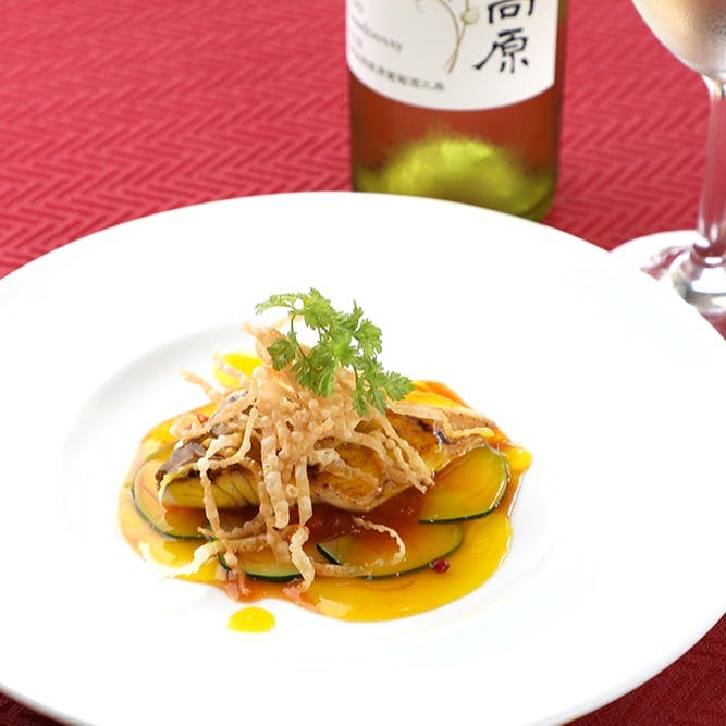 生駒高原の自然の中で、カジュアルにワインとお食事を楽しめる施設としてオープンした【シャレ―生駒高原】。地元の食材を使ったお料理とシェフの細やかなもてなしの中、お寛ぎのひとときをお過ごしいただけます。お昼はみんなでワイワイ楽しめるランチを、夜は落ち着いた雰囲気の中でゆったりと愉しめるワインのペアリングを考えたメニューをご用意しております。