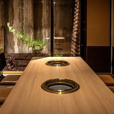 駅前の喧騒から少し離れた落ち着いた閑静な大人エリア。 当店は全席個室となっておりますので、 接待や会食はもちろん、仲間・ご友人とのお食事をお愉しみください。 デート利用にも最適な2名様用の個室もございます。 日本が誇る霊峰富士山をコンセプトにした、 落ち着いた雰囲気と高級感あふれる店内では、 厳選した国産黒毛和牛を中心とした焼肉が楽しめます。