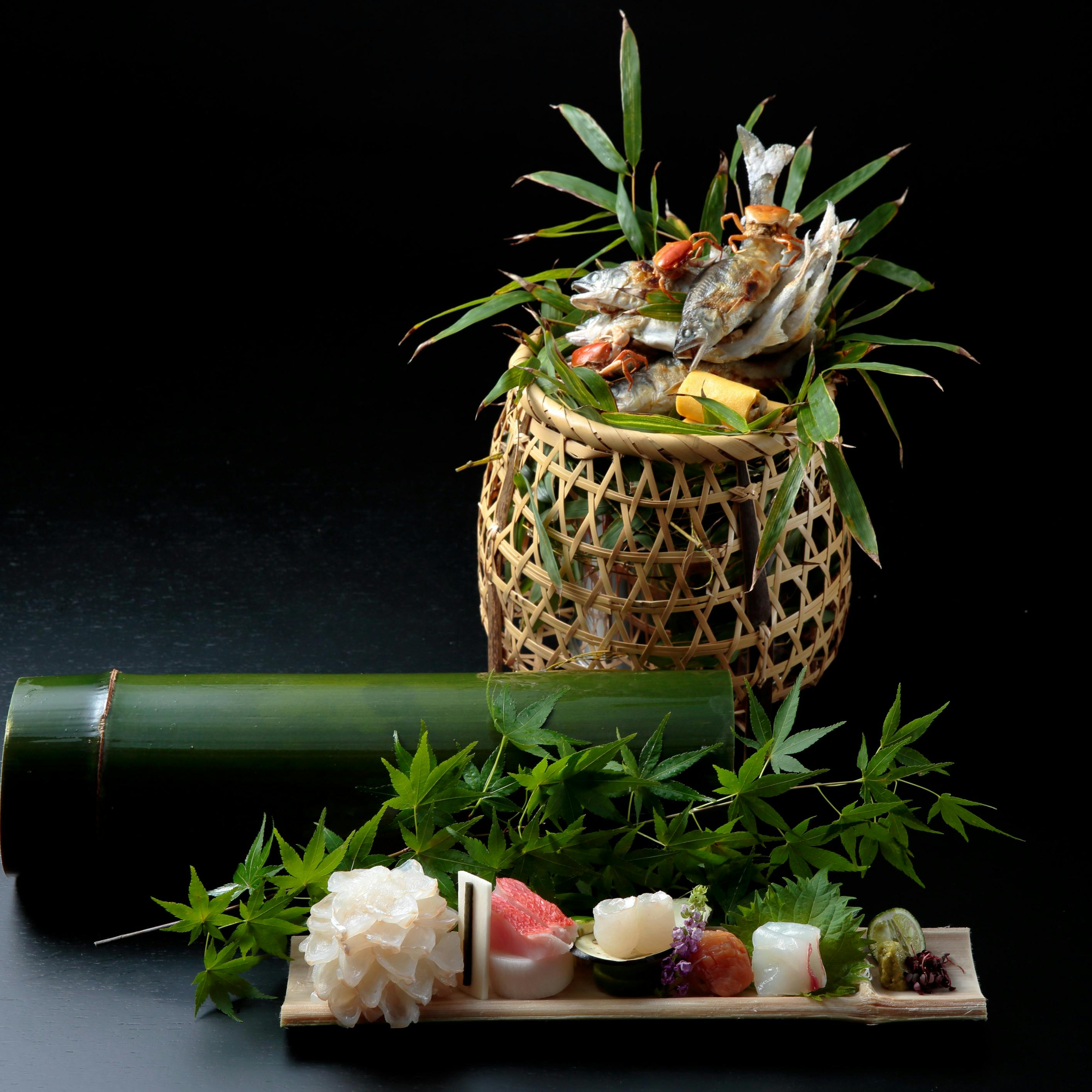 季節の移ろいを感じさせる食材と彩り、趣ある皿や椀に盛り付けられた繊細な技と心。地元で採れた旬のものを取り合わせながら、舌だけではなく、五感の全てを楽しませる料理をご用意しました。全国の銘酒と共に、和食の真髄をご堪能ください。