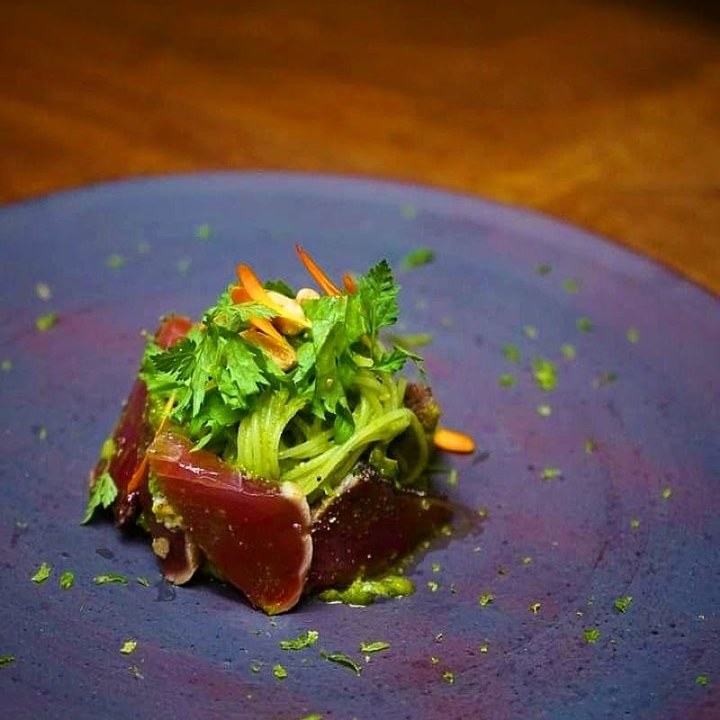 アクセスに便利な六甲道駅から、徒歩5分。アイボリーを基調とした穏やかな色合いの店内では、一日最大3組のゲストをシェフとマダムがおもてなし。隠れ家的な全10席の空間で、料理一筋36年のシェフが素材と真摯に向き合い、巧みに融合させた季節感溢れるイタリア料理をお楽しみ下さい。