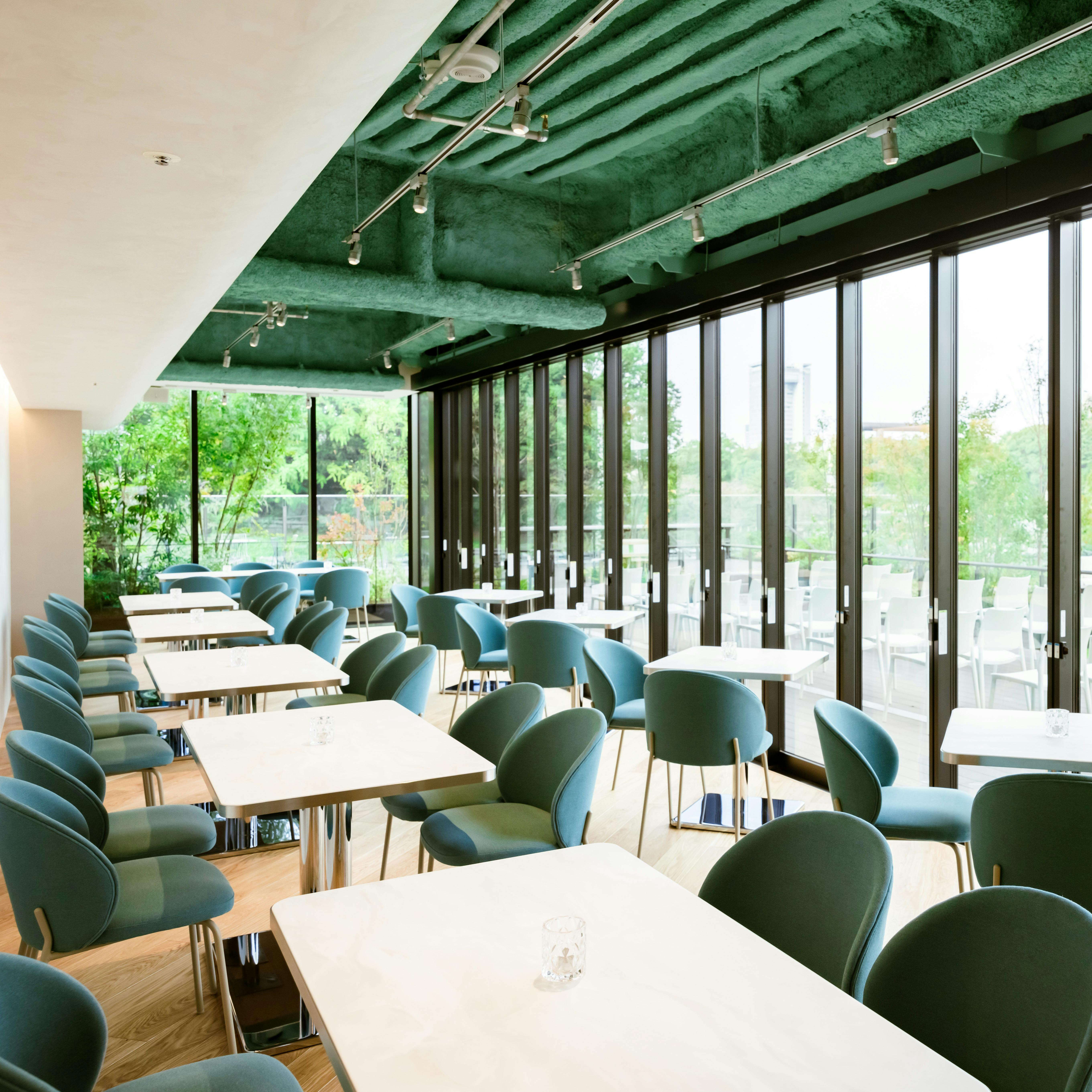 全面ガラス張りの解放感溢れる店内、屋上庭園に隣接するテラス席も併設され、武道館や靖国神社の鳥居、お堀などを眺め、四季折々の景色の移ろいに癒されます。優雅なランチタイムや午後のひとときには、香り高いオーガニックティーブランド「マイティーリーフ」ティーやオリジナルの九段ブレンド珈琲とともにシェフ・パティシエ特製アフタヌーンティーセットを。