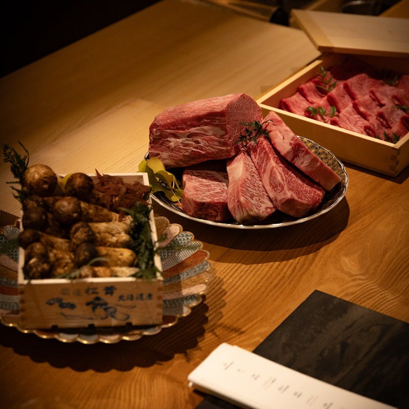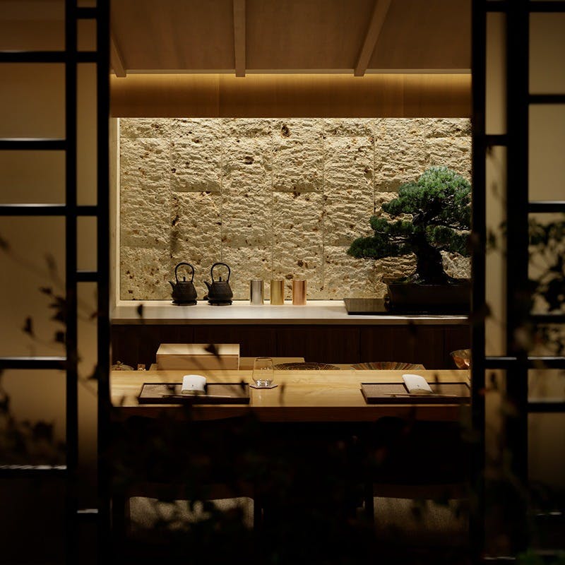 東京 銀座、並木通り。エレベーターを降りた先には季節の木花がお客様をお迎えする凛とした空間。カウンター越しに見せる料理の技。和牛を使った多彩な逸品と山海の旬の組み合わせでお楽しみいただく割烹料理と銘酒の数々。至極の料理、心のこもったおもてなしと上質な空間、贅と安らぎを同時に感じる非日常な時をご堪能いただければ幸いです。