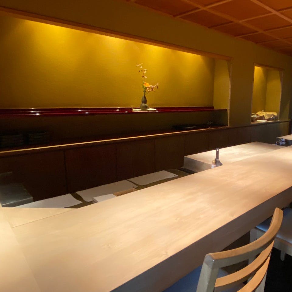 上質な美意識が貫かれた店内には、心地よく背筋が伸びるようなカウンター席が8席。 隅々にまで洗練が行き届いた、とっておきの空間が迎えてくれます。