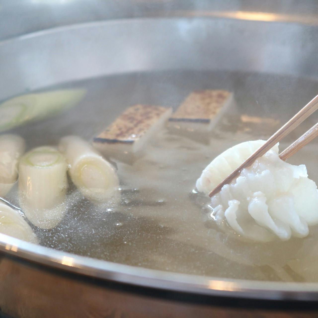 骨、昆布、鰹節を大量に使う香ばしい出汁。鮮度の良い鱧は出汁の中で牡丹の花のように開きます。 言葉では表現できない旨味。ぜひご来店のうえ、お楽しみください。