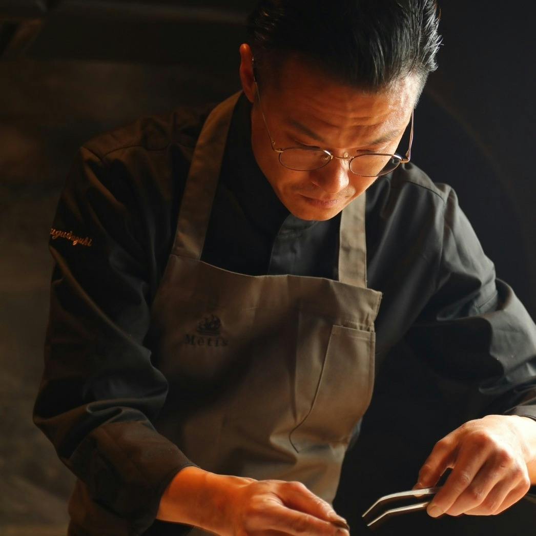 2023年2月にオープンし、開業以来3年連続ミシュランガイドに1つ星店舗として掲載。和の要素を盛り込んだシックな内装で、竈を中央に配したライブ感のあるキッチン。どのお席からも薪の炎を眺められる非日常的な空間がひろがります。 シェフがこれまでの経験を活かし、和牛A5“クリミ”をはじめとした旬で希少な食材をフレンチベースで和の要素も取り入れて表現されたお料理、それらを薪の焼ける音と香りと共に五感を通してお楽しみ頂きたい。