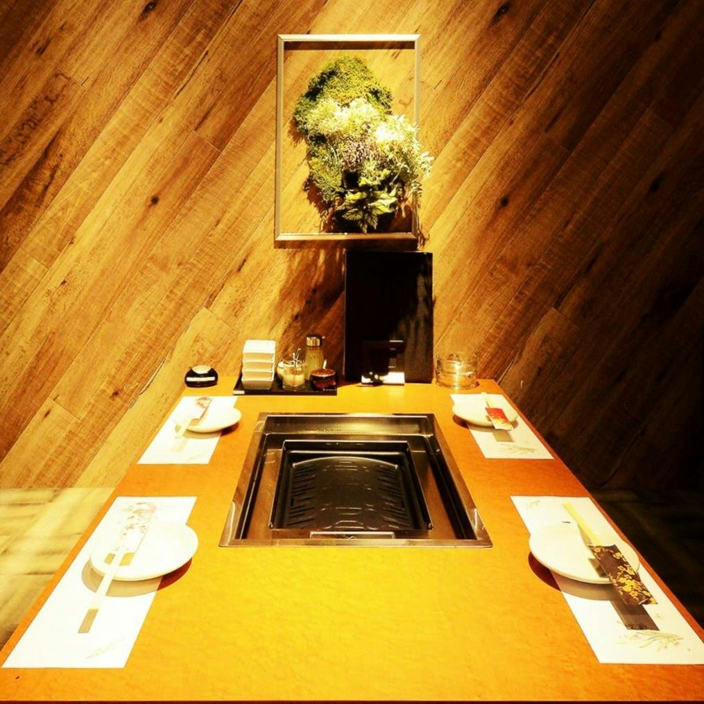 当店は全席個室でございます。店内はゆったりと寛げるカジュアルな半個室と、黒を基調としたシックな完全個室を完備しております。2名様~個室を繋げて最大24名様の宴会も可能です。近鉄四日市駅周辺での焼肉なら是非当店まで。