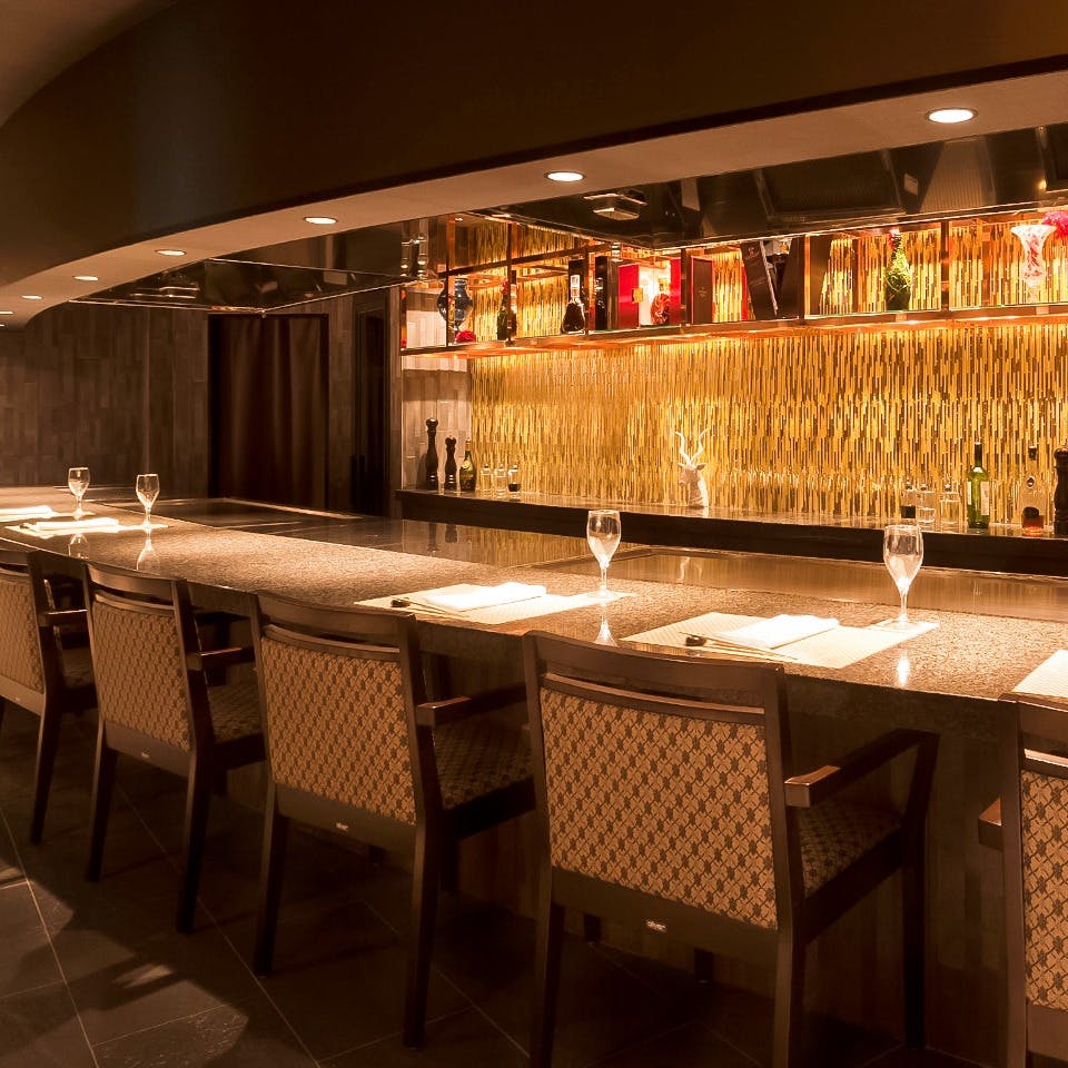 ゆったりと座ることのできる椅子と温かみのある灯りのカウンター席で特別なひとときをお過ごしください。調理人との会話も愉しめるお席となっております。