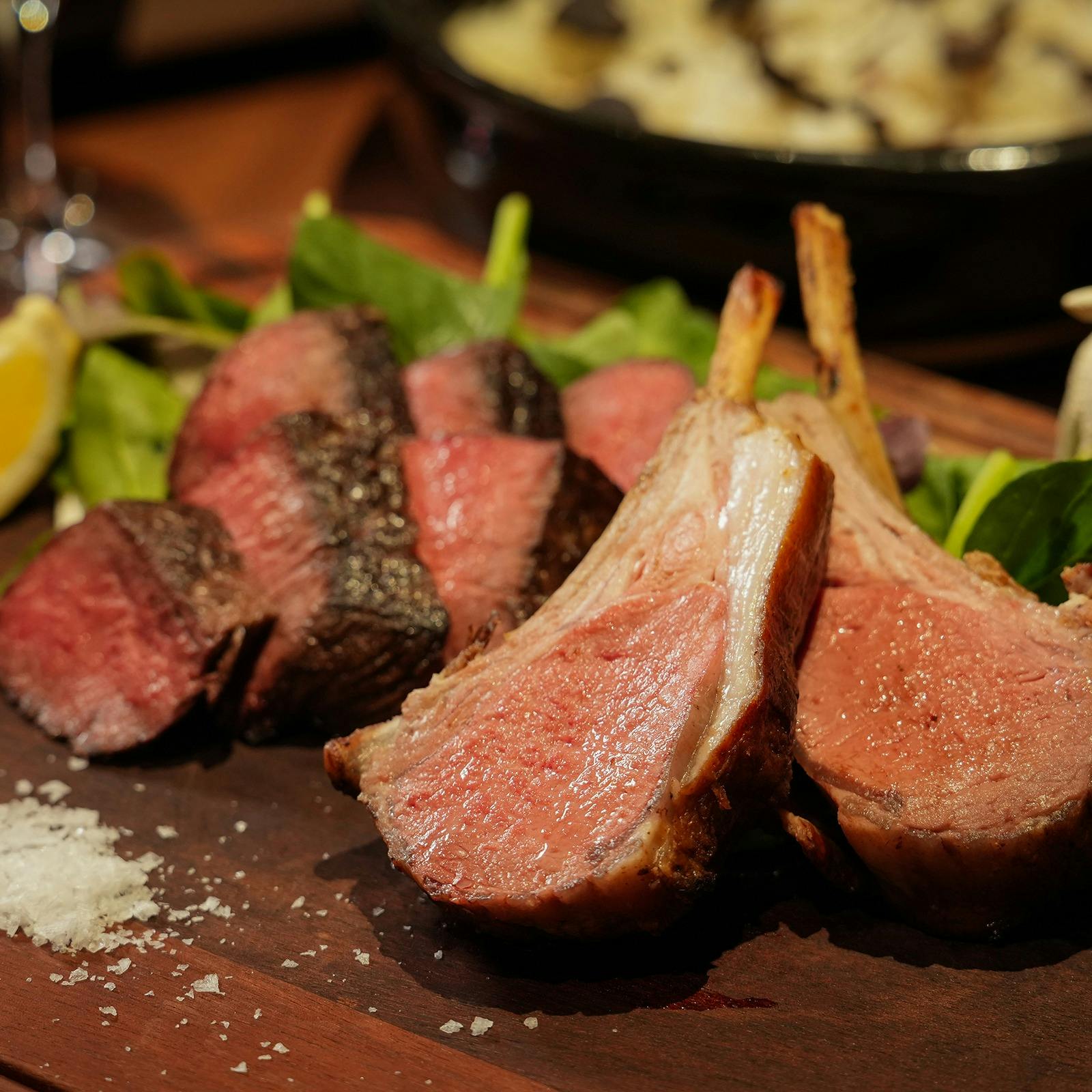 【名物】肉盛りやラムチョップを筆頭に こだわりの豚・鶏・羊の極上肉料理が体験できる肉居酒屋。 豪華なメインはもちろん、自慢の肉を活かした前菜や温菜、カジュアルに楽しめるおつまみ・串焼きまで! デートやご家族でのディナー、ビジネスシーンでもご活用頂けます。 店内はテーブル・カウンター・ソファ席の計40席、 そして赤坂の洒脱な雰囲気を楽しめるテラス席もございます。