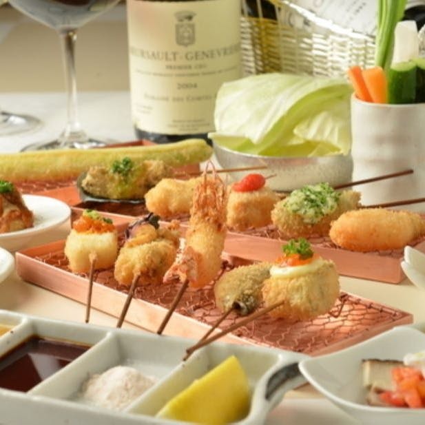 東京駅より徒歩2分。本場大阪仕立ての串揚げ料理が楽しめる「串あげもの 旬s 丸の内店」。バラエティ豊かな食材を、これまでにないおいしさで、ヘルシーにしかも栄養バランスよく味わっていただけます。