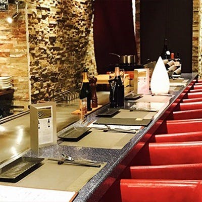 マリオットホテルで腕を振るった料理長から生まれる高級中華と鉄板焼きのフュージョン「融合」を山海にてお楽しみください。誕生日や記念日のスペシャルなデザートなどもご用意しております。真っ赤な椅子のアクセントが効いたお洒落な空間で、話し好きで気さくなシェフとの会話も楽しみながら極上の鉄板焼きをご堪能ください。