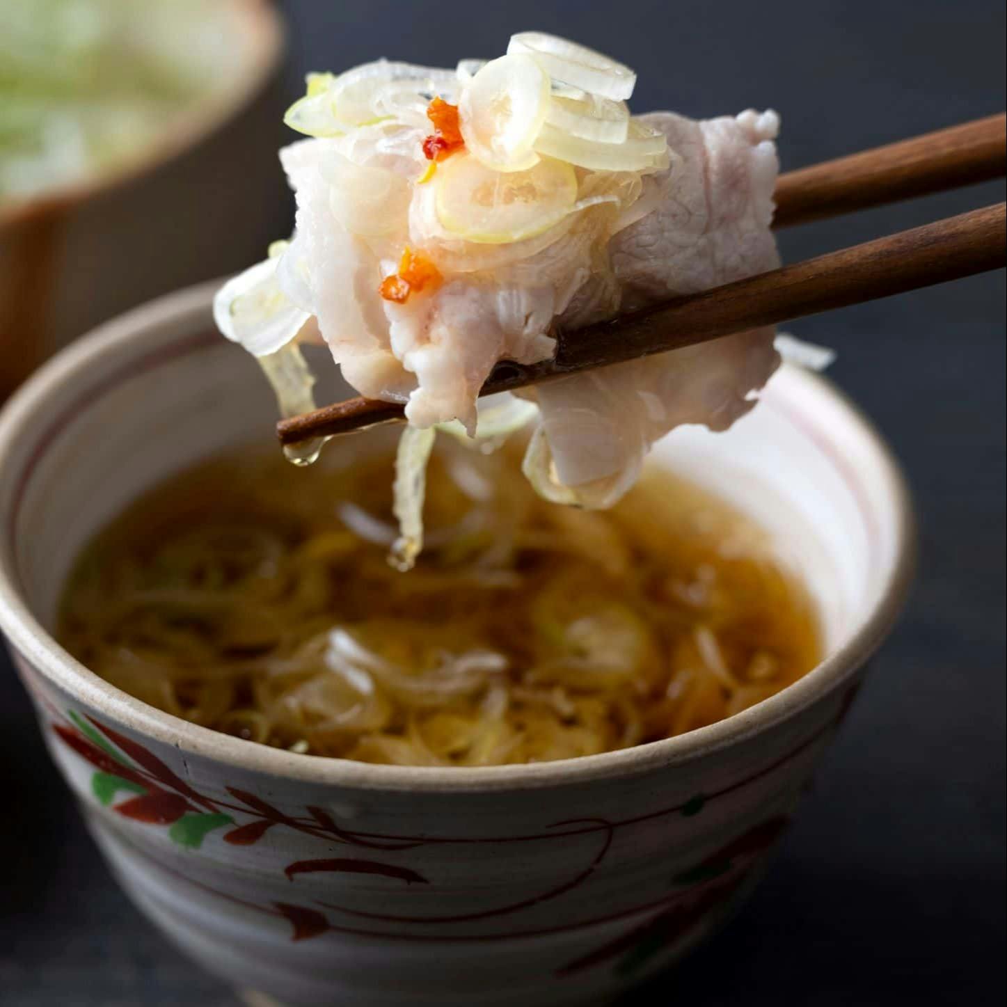 京都より受け継ぐ伝統のお出汁でいただく名物の「出汁しゃぶ」を、四季折々のお料理とともに会席コースにてご提供しております。 とろける食感の甘く柔らかい豚肉を奥深い自慢の「出汁」にたっぷりつけて香り良い葱と一緒にお召し上がりくださいませ。 全席個室の重厚感ある和空間で、ゆったりとおくつろぎください。 新橋駅至近ながら喧噪を感じない格調高い和空間でお待ちしております。