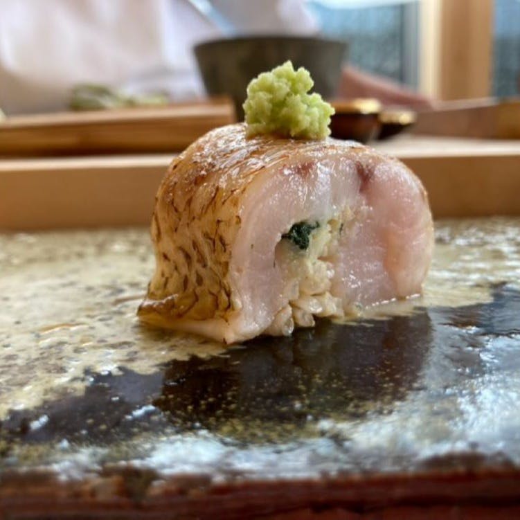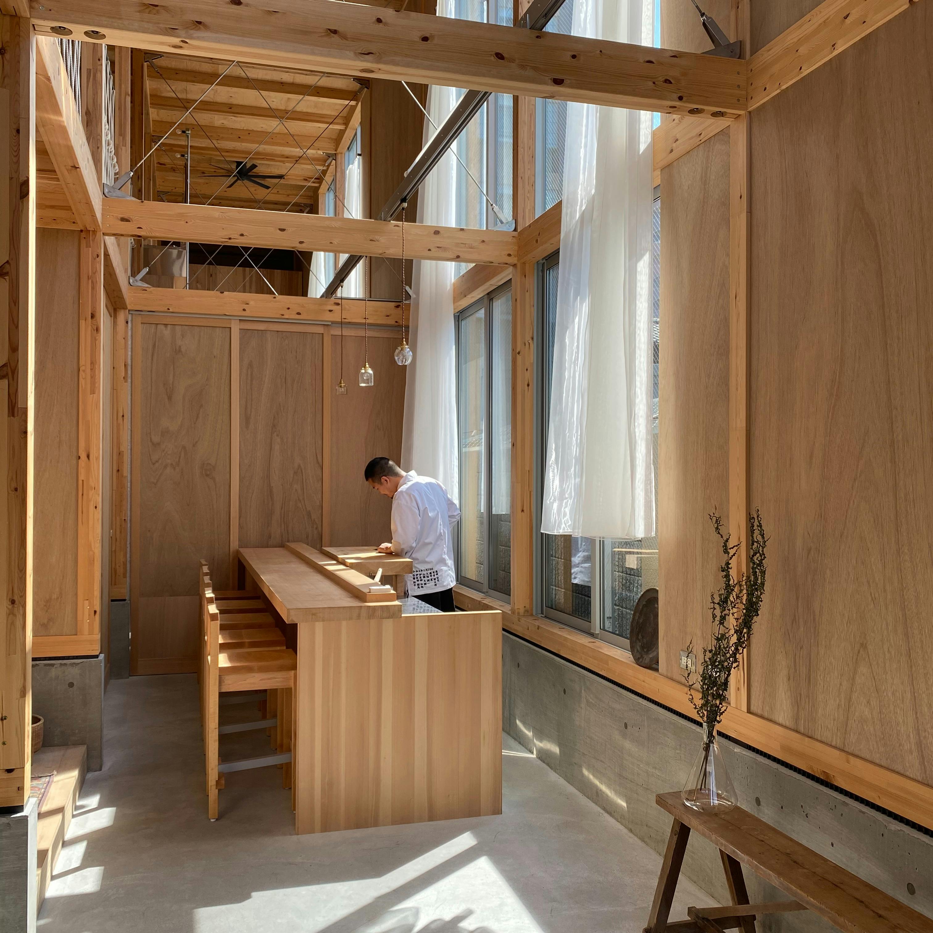 玄界灘に浮かぶ小呂島の出身の店主は茨城・水戸の寿司店で腕を磨き、地元である福岡に戻って店をオープン。昼、夜ともに1組限定ですが、これは子ども連れも周りに気兼ねせずに来て欲しいという思いから。自由におしゃべりしながら肩肘張らずにお寿司をお楽しみいただけます。