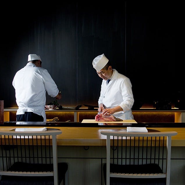 大阪を代表する花街、北新地に開業する肉割烹「友百合」。拘りの生産農家より仕入れた食材を、料理長がこれまで培ってきた料理手法で五感で愉しめる一皿に昇華させます。薄明かりに灯され洗練された大人な空間の店内には、コの字型のカウンター席と、半個室をご用意。料理が仕上がる瞬間など、臨場感溢れるパフォーマンスを真近で感じていただけるカウンターでは、しずる感溢れるお料理をお召し上がりいただきながら美酒を嗜み、半個室ではご友人や取引先の方々と会話に花を咲かせながら、特別な時間をお過ごしいただけます。滋味あふれる食材と上質な肉を匠の技で掛け合わせ昇華させた至極のお料理を心ゆくまでご堪能くださいませ。